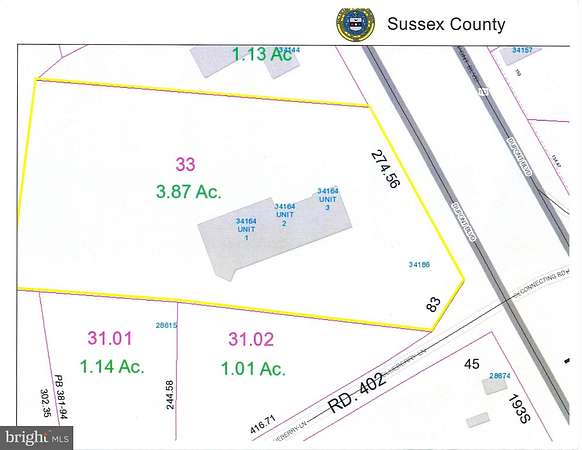 Highly visible location. It is situated on 113 in Frankford. The property comprises 2 parcels, for a total of 4.88 acres. The property is located at a traffic light in the southbound lane of 113 DuPont BLVD. in Frankford. This location allows for several ways to access the parking lot with frontage on not only 113 but also Rd.402. This commercial listing has potential for several entities, the building currently houses Shore Appliance which resides in 6,600 sq. feet. The building has a remaining 7,150 sq. feet of space for lease. At the back of the parcel is a gated and fenced storage area (30,000 sq. feet) To the front of the parking lot M&T Bank has a free-standing ATM. The roof, garage doors, and parking lot were all recently renovated. An already approved sign completes the highly desirable location. The Potential of this property is unlimited. Book your showing today. The listing is tax Parcels #433-6.00-33.00, and #433-6.00-31.02.
