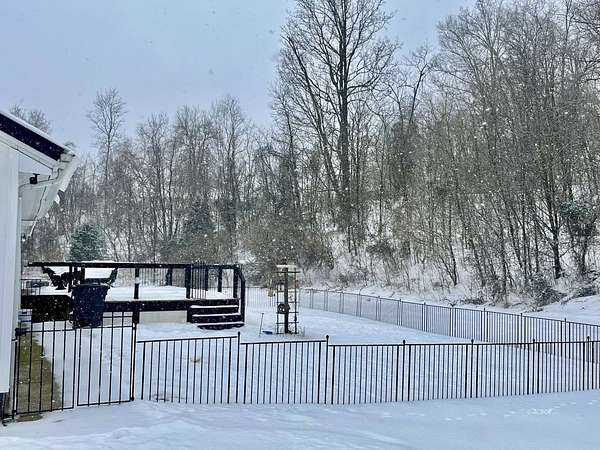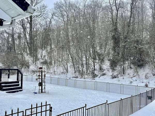 - Covered Porch, Gutters & Downspouts, Part Fenced, Trees