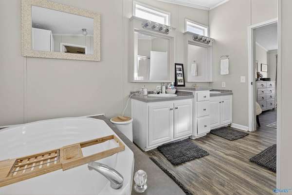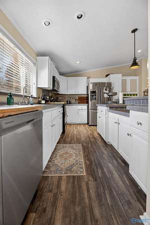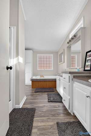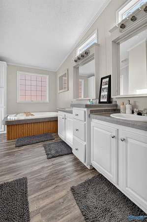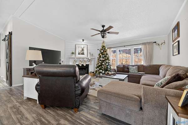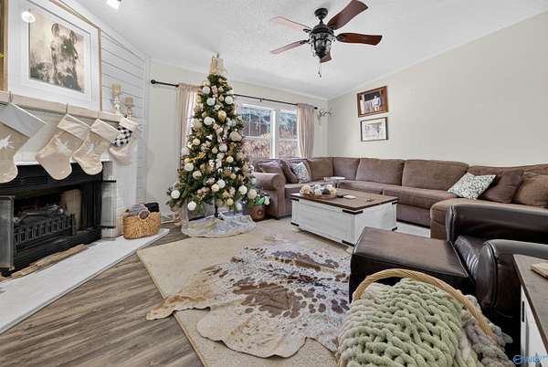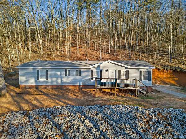 Indulge in 7.22+/- acres of peaceful seclusion in Ohatchee, AL! This well-maintained manufactured home on a permanent foundation offers approximately 1,620 sq ft with a spacious 3-bedroom, 2-bath layout designed for both comfort and functionality. Inside, you'll find updated LVP flooring and a bright open-concept living area, perfect for entertaining or enjoying everyday moments with family. The primary suite features a generous bathroom with double vanities and a relaxing garden tub, creating a private retreat at the end of the day. Additional highlights include abundant natural light, a welcoming front porch, and plenty of room to enjoy the surrounding acreage.