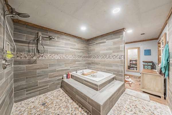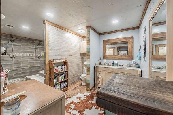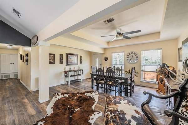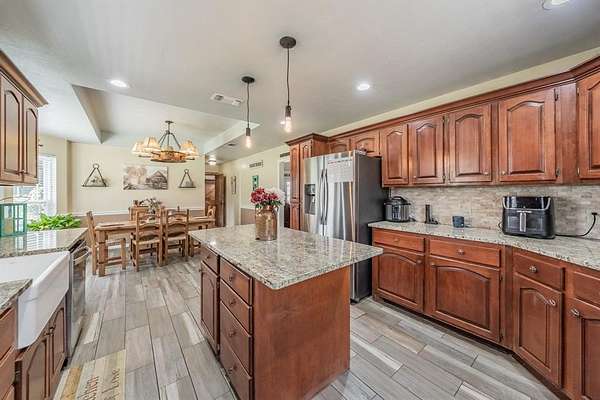 Welcome home to this exceptional AG-exempt estate which encompasses more than 5 acres, providing optimal accommodations for equestrian and other livestock activities. This outstanding residence boasts numerous recent updates and amenities including luxury vinyl plank flooring, fresh paint, and a full-height stone fireplace with gas insert and cedar mantle. The home also features two generous sized master suites, each with an ensuite bathroom; the main primary bedroom has direct exterior access, a bath that offers a custom-built 10 x 10 shower with 3 shower heads, a jacuzzi tub, and an enormous walk-in closet with built-ins. Each of the other bedrooms feature walk-in closets and spacious layouts. The kitchen is equipped with stainless steel appliances, granite countertops, an island, and an adjacent laundry room with extra space for storage and a secondary refrigerator. Other recent improvements include a new Class 4 roof, rain gutters, windows, insulation, and a new 5-ton HVAC system offering you efficiency and comfort. Exterior amenities include a stunning Pebble Tec saltwater pool with a waterfall, a recent pool patio extension, an oversized carport accommodating 4 vehicles, as well as a separate 30 x 60 RV or boat carport with 50-amp power and lighting, a 25 x 25 insulated workshop including electricity and a roll-up door. The private entry is secured by a beautiful custom electric gate. The entire property is fenced and cross-fenced, featuring two sandy loam pastures and a 30 x 30 converted five-stall horse stable-barn with tack-feed room and equipped with electricity for lighting and fans. There is also a covered, fenced dog kennel. The property offers attractive landscaping, towering mature trees and it is conveniently located near L3, shopping, restaurants, and it sits on a private, tree-lined road with over 800 ft of road frontage. It truly is the perfect blend of convenience, comfort and peaceful rural living. Come discover all this property has to offer!
