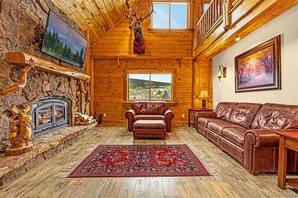 MOSTLY FURNISHED, WITHIN LAST 2 YEARS - NEW TANKLESS WATER HEATER, NEW STAINING, NEW CHINKING, LOT FIRE MITIGATION, NEW PIPING AND VENTING FOR FURNANCES - Gorgeous log cabin featured on HGTV, sits on 2 acres surrounded by Aspen trees & breath-taking views. Offers 4 beds, 5 baths, a dedicated office, high end finishes, 3 fireplaces, 2 steam showers, Micro-Silk Tub, pool table, induction stove, granite countertops, hot tub, and soft close cabinets. 600 sq ft covered deck to take in the views of mountains & valley below. Ideally located with convenient access to Breckenridge, Keystone, Copper Mountain, A-Basin, Vail, and Beaver Creek, plus nearby rafting in Buena Vista and endless recreation throughout South Park, this property delivers four-season adventure right from your doorstep. Whether you’re seeking a private mountain getaway or a high-performing short-term rental opportunity, this exceptional home offers it all.