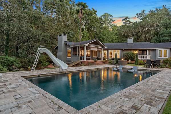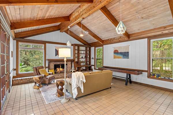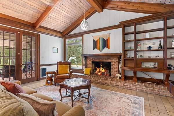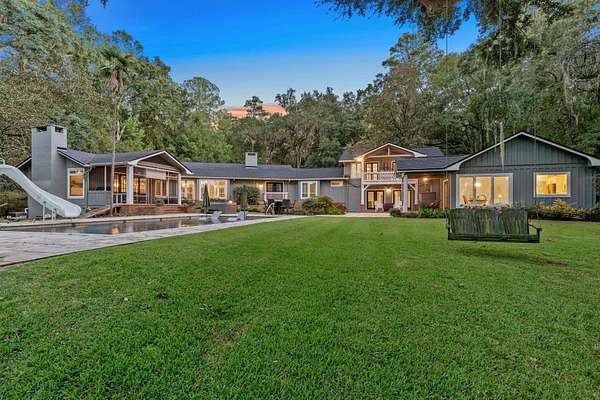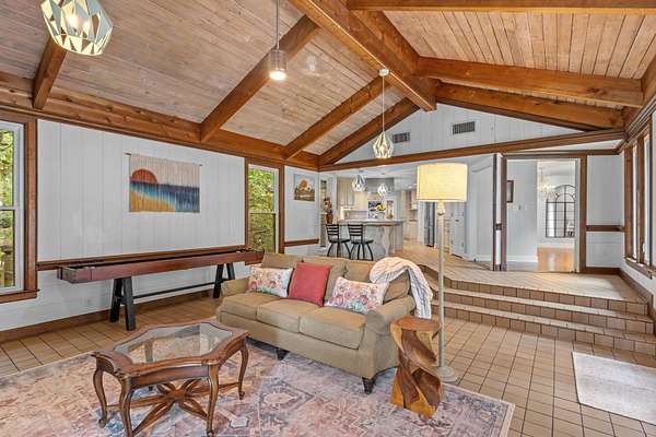 Exquisite Lake Jackson estate situated on over 6 acres with stunning elevations and panoramic lake views. This beautifully maintained home offers exceptional detail and updates throughout, including tongue-and-groove open beam ceilings, natural hardwood floors, multiple fireplaces, a newer roof, and newer rear windows showcasing the incredible scenery. The guest house features a full kitchen, bath, and laundry, ideal for extended family or frequent guests. Experience an unparalleled backyard retreat, featuring a spacious pool deck with a sun shelf, a heated pool and relaxing hot tub for year-round enjoyment, and a private dock ideal for kayaking, fishing, or boating. Expansive outdoor living areas make it easy to enjoy the peaceful surroundings year-round. Additional upgrades include a newer gas water heater, newer septic tank and drain field, and a whole-home natural gas generator with remote access. Every element of this home has been thoughtfully designed for comfort, efficiency, and enjoyment.