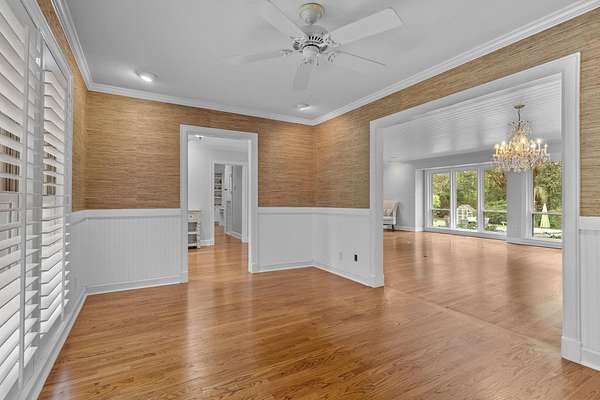 - Entrance Foyer, Garden Tub Roman Tub, Hot Tub Spa, Pantry, Primary Downstairs, Sun Room, Tray Ceilings, Vaulted Ceilings, Walk In Closets, Window Treatments