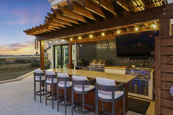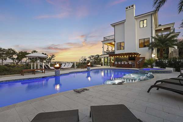 Step Through Plated Double Glass Doors Into A Grand Foyer With Dramatic Italian Tile Flooring,A Crystal Chandelier,And A Sculptural Staircase Complemented By An Elevator. The First Level Includes A Private Secondary Primary Suite With Marble-accented Bath And Direct Proximity To The Fully Equipped Party Kitchen--ideal For Guests Or Multi-generational Living. A Professional-grade Home Gym With Exterior Access Sits Beside A Flexible Wellness Room,Offering The Perfect Opportunity For An Infrared Sauna. The Second Floor Hosts A Chef's Kitchen With Beautifully Restored Ash Wood Floors,Quartz Countertops,Durasupreme Cabinetry,Sub-zero Refrigeration,A Wolf 6-burner Gas Range,And A Galley Chef Series Workstation. A Cozy Sitting Area And Adjacent Decks Frame Stunning Sunrise And Sunset Views Over The Intracoastal Waterway. Also On The Second Floor Is An Elegant Living And Dining Spaces Which Features Ash Hardwood Floors,A Custom Gas Fireplace,Designer Lighting,And Expansive Glass Doors Leading To A Tiled Outdoor Terrace. A Central Office With Exceptional Water Views Offers Deck Access And Convenient Proximity To The Main Living Areas. The Third-floor Hosts Three Beautifully Appointed Suites. The Primary Suite Includes Custom California Closets,A Private Balcony,And A Spa-inspired Walk-in Bath With Italian Tile,Granite Surfaces,Restoration Hardware Finishes,And An Asian Soaking Tub. Two Additional Guest Suites Each Offer Private Baths And French Door Access To The East-facing Deck. A Sitting Area Leading To The Sunset Terrace Completes This Serene Upper Level. Outdoors,A Spectacular 1,019 Sq. Ft. Saltwater Pool And Spa Overlooking The Intracoastal,Enhanced By Fire Bowls,In-pool Seating,And Dramatic Water Features. The Summer Kitchen--complete With Grill,Refrigerator,Ice Maker,Fryer,And Big Green Egg--creates The Perfect Setting For Unforgettable Gatherings,With A Full Pool Bath Just Steps Away. This Exquisite Home Provides Intercoastal Frontage To The East And Marsh And Robinson Creek Frontage To The North,Northwest. Quality Construction And Thoughtful Upgrades Include Concrete Block Through The Second Floor,Sonos Sound System Inside And Out,Baldwin Brass Hardware,Five Newer A/C Units,Three Water Heaters,Irrigation Well And Sprinklers,City Sewer Connection,And A Full Fire And Sprinkler System. This Home Blends Exceptional Craftsmanship,Luxurious Amenities,And Breathtaking Waterfront Views Into A Truly Extraordinary Coastal Retreat! Offered Fully Furnished As A Convenience To Those Who Know Quality When They See It.