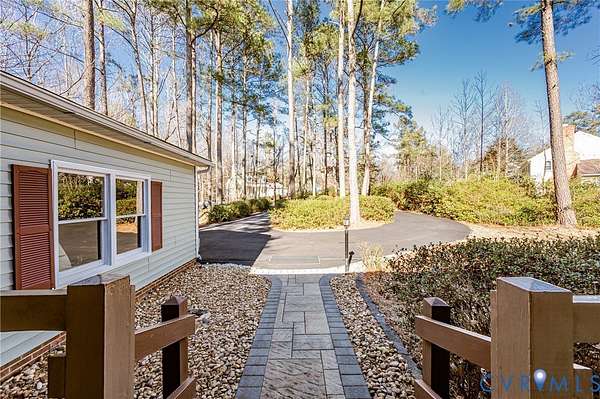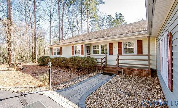 Welcome to single-floor living at 3419 S Hairpin Drive in the Five Lakes community of New Kent. Nestled on a private 1.58-acre wooded lot, this spacious home overlooks the 14th green of Brookwoods Golf Course and offers over 400 feet of direct golf course access. With 2,144 square feet of living space, the home features 3 bedrooms and 2 full bathrooms. A formal living room opens to a large great room with a custom kitchen offering abundant storage, including deep drawers, a pull-out spice rack, and a built-in wine rack. Granite countertops, a breakfast bar island, stainless steel appliances, a kid-safe GE induction cooktop, and a custom hood complete the kitchen. The open dining area with a gas log fireplace flows into the family room, while the light-filled Florida room features skylights, a ceiling fan, and access to the deck with views of the gardens, patio, and golf course. The spacious primary suite includes a walk-in closet and private bath with tile shower and tile flooring. Bedroom two offers a walk-in closet and Jack and Jill bath, while bedroom three features a large closet. All bedrooms are carpeted and have ceiling fans. The hall bath includes a tub/shower combination and vinyl flooring. A cheerful laundry room includes washer, dryer, and ample cabinetry. Additional highlights include ceiling fans throughout most rooms, recessed lighting in main living areas, a two-car attached garage with automatic doors, covered front porch, circular paved driveway, storage shed, lamppost, sidewalk, flip-down gutters, vinyl siding, double-hung thermal windows, a dimensional roof, custom designed patio, landscaped yard, and natural wooded paths. No HOA. Conveniently located with easy access to I-64 and close to VCU Emergency Care Center, new fire station, grocery store, restaurants and Jolene Family Winery. Don't miss this opportunity for peaceful golf course living or just peaceful single floor living.