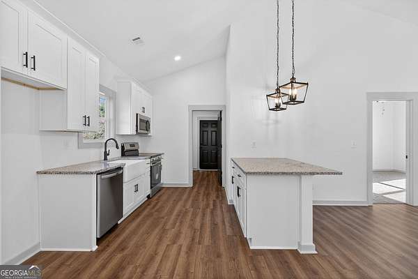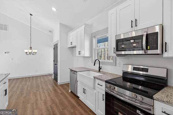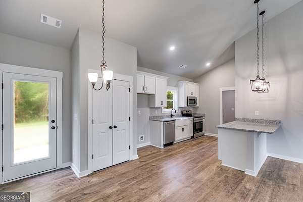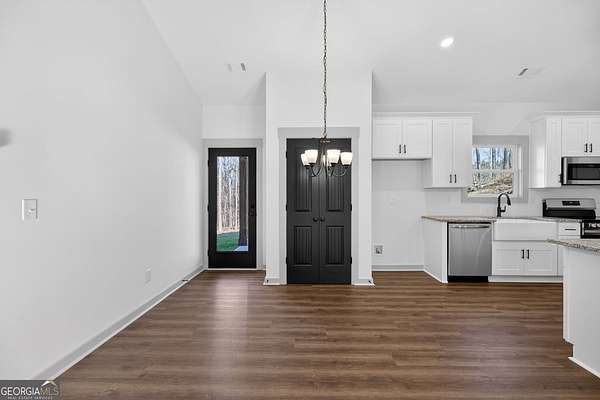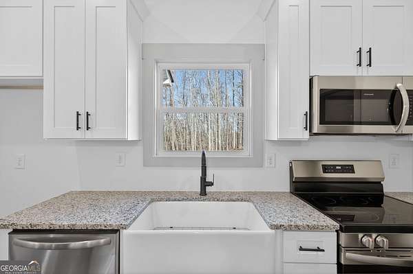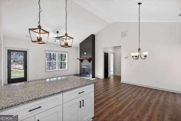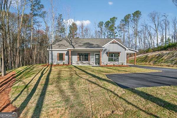 BEAUTIFULLY CRAFTED SINGLE LEVEL RANCH HOME CURRENTLY UNDER CONSTRUCTION ON A PEACEFUL 1.65 ACRE LOT WITH NO HOA OR SUBDIVISION RESTRICTIONS. Take advantage of TEN THOUSAND DOLLARS (US $10,000) in flex cash with the use of the preferred lender. Conditions apply. See listing agent for full details. Located in close proximity to downtown Dallas and just a short drive away from East Paulding, Hiram, and West Cobb, this property offers the rare combination of private country living with convenient access to retail establishments, including local shopping, dining, and everyday amenities! This thoughtfully designed stepless ranch features 3 bedrooms and 2 full bathrooms with an open-concept layout highlighted by vaulted ceilings in the main living and dining areas. The kitchen will include stainless steel appliances, a pantry, and modern finishes ideal for both everyday living and entertaining. Luxury vinyl plank flooring runs throughout the home for durability and low-maintenance living. A dedicated laundry room/mudroom adds functionality and convenience. The split-bedroom floor plan provides privacy, with the primary suite featuring a walk-in closet and a tiled walk-in shower. Interior Highlights include a modern electric fireplace with shiplap surround and cedar mantel, along with contemporary finishes throughout. Exterior features include vinyl siding, metal window awnings, cedar accents to complement the front porch and shutters, a covered front porch, a covered rear porch, and an attached carport. The spacious 1.65-acre lot offers plenty of room to enjoy outdoor living in a peaceful setting. Completed home photos may depict a similar home with the same floor plan and do not represent the actual subject property.
