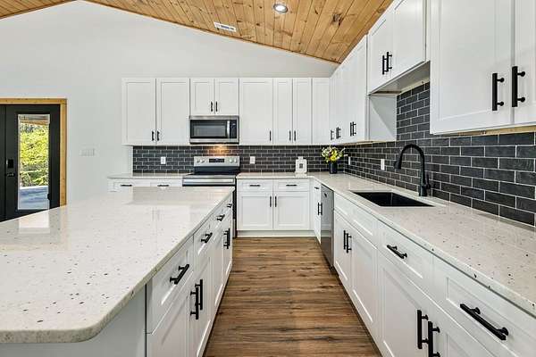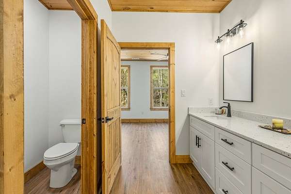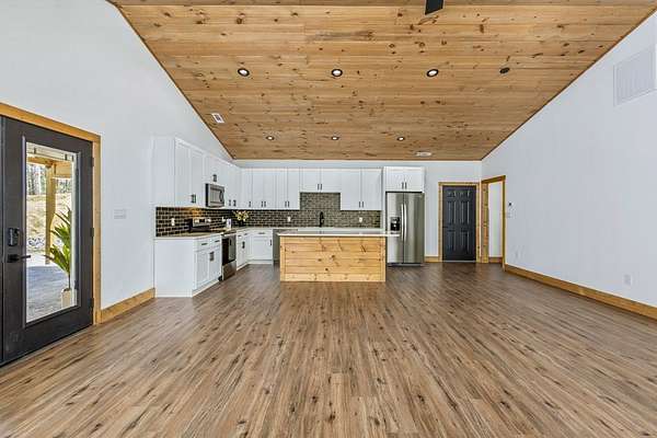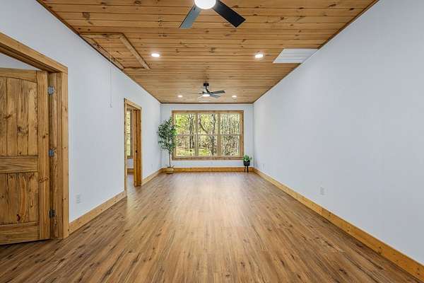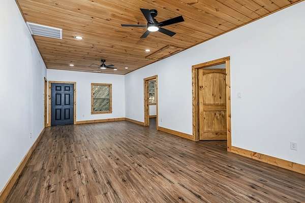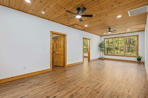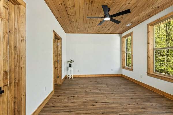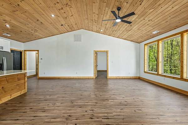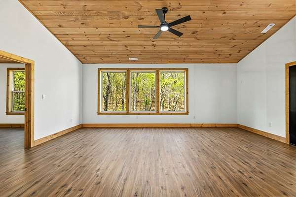 Rare opportunity to own 13.71 UNRESTRICTED acres with over a quarter mile of private, babbling creek frontage—complete with a wide, cleared walking path and established trail system perfect for ATVs, side-by-sides, or exploring your own mountain paradise. A beautifully landscaped picnic area at the water's edge creates the perfect setting for relaxation, while multiple level areas offer endless possibilities for gardening, outdoor living spaces, or future expansion. A second transformer is already in place, and underground electricity is available for added flexibility. This brand new 2026 home is thoughtfully built with 4x6 framing, energy-efficient Pella windows, and blown-in insulation for comfort and efficiency. Inside, you'll find 2 bedrooms, 2.5 bathrooms, and a flexible layout designed for both everyday living and hosting guests. The family room features its own private exterior entrance, creating an ideal guest suite setup with bedroom, bathroom, and flex space. Quality finishes include easy-maintenance LVP flooring, granite countertops throughout, tongue-and-groove ceilings, and ceiling fans in every room. A private well (146' deep, producing approx. 20 GPM) ensures reliable water, while multiple high-speed internet options and strong cell service keep you connected. Additional features include an oversized 2-car garage, 36” wide interior doors, gated driveway for added privacy, and no HOA. Conveniently located near downtown Murphy, just 20 minutes to Harrah's Cherokee Valley River Casino & Hotel and approximately 30 minutes to Blue Ridge. A unique blend of new construction, usable acreage, and creekside living—ready for your vision.
