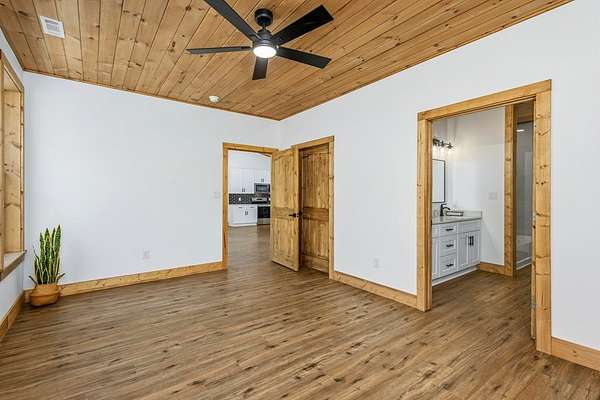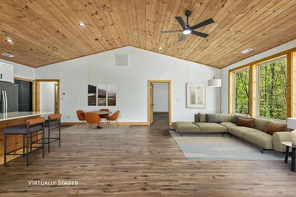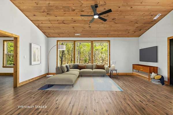 - Cathedral Ceiling(s), Ceiling Fan(s), Sheetrock, Wood