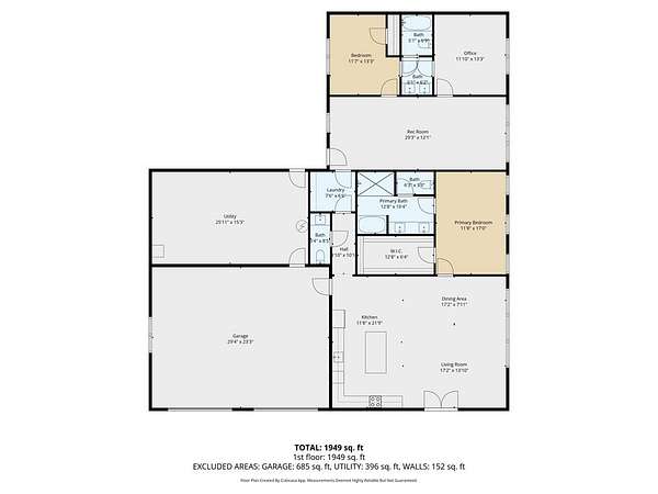 - Bathroom x 3, Bedroom x 2, Bonus Room, Great Room, Kitchen, Laundry, Living Room, Office