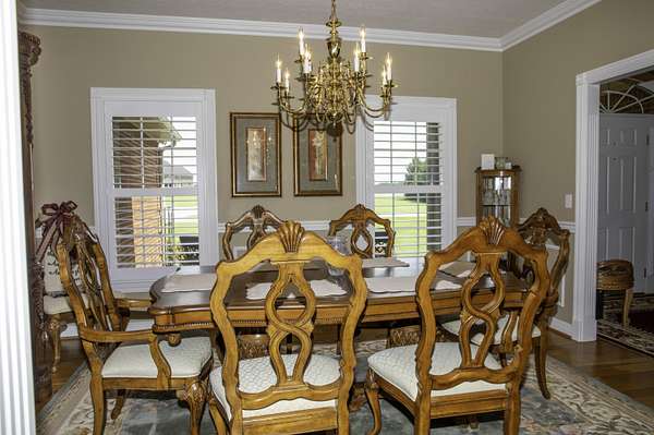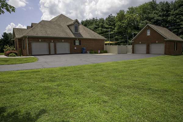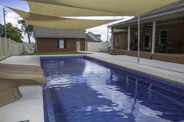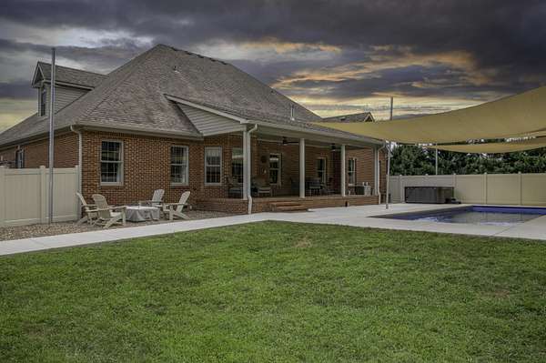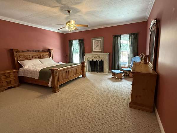 MOTIVATED SELLER!! Welcome to Your Dream Home! This beautifully maintained 1.5 story brick gem spans 4,399 sq. ft. on 1.6 acres. With 5 bedrooms and 3.5 bathrooms, it offers plenty of room for family and guests. Inside you will find soaring 9-foot ceilings and a stunning stairway leading to the second floor, enhancing the home's elegant, open design. The large kitchen is a chef's dream, equipped with high-end appliances, abundant counter space, and a layout that flows seamlessly into the living and dining areas. The living room features a natural gas stone fireplace, perfect for cozy evenings. Hardwood, tile, and carpet floors add warmth throughout. Step outside to your private oasis, with a brand-new heated saltwater pool and water slide. Expansive covered porches in the front and back are ideal for relaxing or entertaining. Additional amenities include a hot tub, a 2-car attached garage, a 2-car detached garage, and an encapsulated crawl space for a clean, dry environment. Located minutes from downtown Danville, this home perfectly blends tranquility with convenience. Perfect for both family living and entertaining!