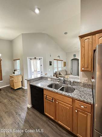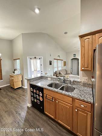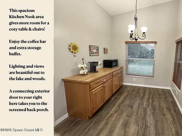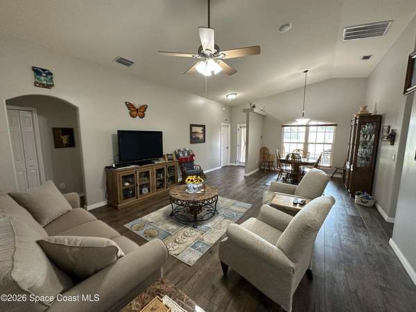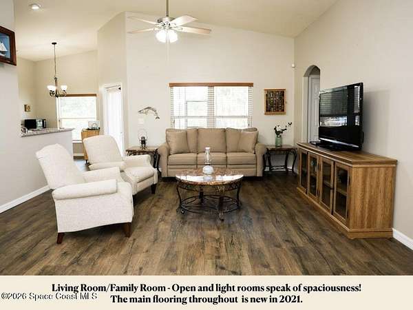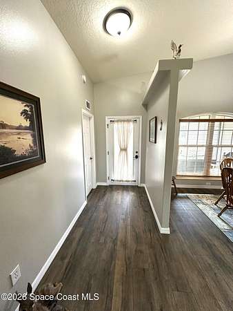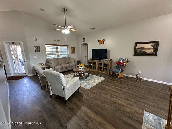 Welcome to 3420 Fox Wood Dr., a beautifully updated 4 bedroom home located in the desirable Windover Farms of Titusville. This thoughtfully designed residence features an open split floor plan that offers both privacy and effortless flow, enhanced by vaulted ceilings in the main living area that create a bright, airy feel. Luxury vinyl plank flooring runs throughout the main spaces. The kitchen features elegant granite countertops, ample cabinetry, and an open layout ideal for both everyday living and entertaining. Enjoy peace of mind with numerous upgrades completed within the past 10 years, including a tankless water heater, 2021 roof, and impact windows. The front and back yard sprinkler system keeps the landscaping lush and low-maintenance, while the screened-in front and back porches provide inviting spaces to relax and enjoy Florida living year-round. Step out back to take in tranquil lake views. Blending modern updates with comfortable design, this move-in-ready home awaits!