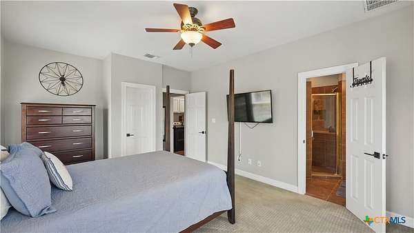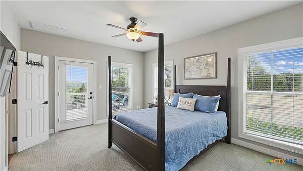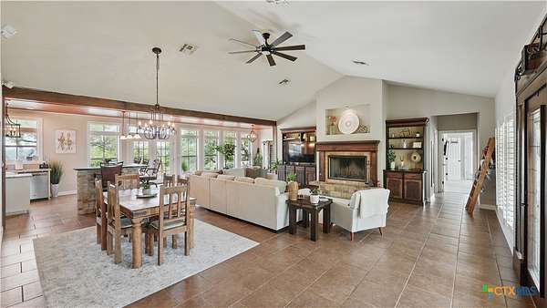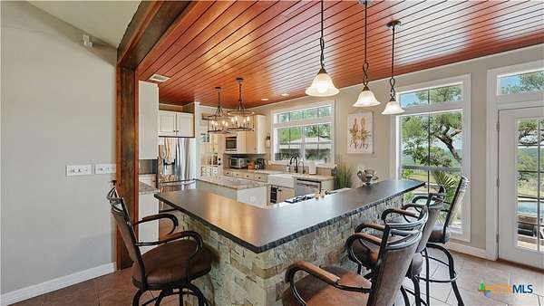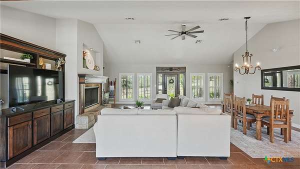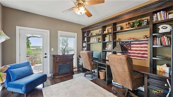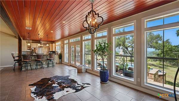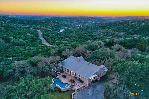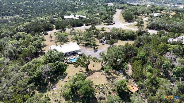 Enjoy breathtaking Hill Country views from this gorgeous 6-acre estate, complete with a sparkling pool and relaxing hot tub. With no HOA or deed restrictions, this property gives the owner complete freedom to use it as they please. The bright, open-concept floor plan is ideal for entertaining, offering seamless flow between the living, dining, and kitchen areas. Each of the three spacious bedrooms features its own en-suite bathroom and walk-in closet, providing comfort and privacy for all. A dedicated home office with custom hardwood built-ins adds both functionality and style. Outside, you'll find a peaceful backyard oasis with full privacy-perfect for unwinding by the pool, lounging in the shade of the large red oak tree, or relaxing on one of the expansive decks. The oversized driveway offers ample parking for an RV, boat, or other recreational vehicles. Ideally located near Canyon Lake, the Guadalupe River, and historic Gruene-with easy access to both San Antonio and Austin-this home offers the perfect blend of tranquility and convenience.