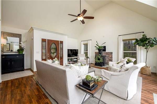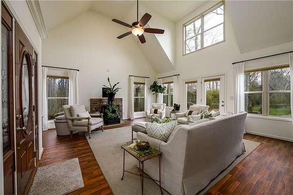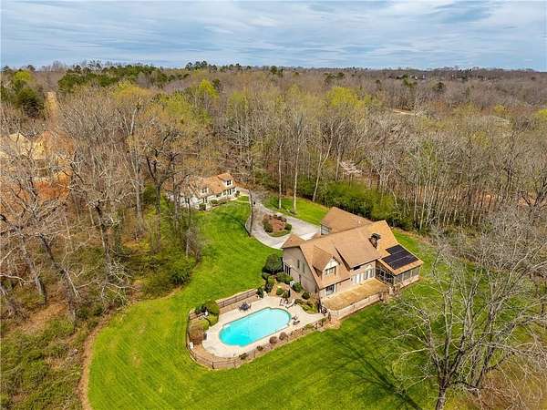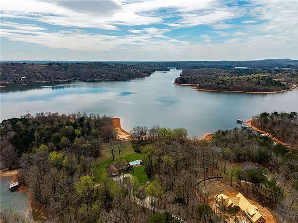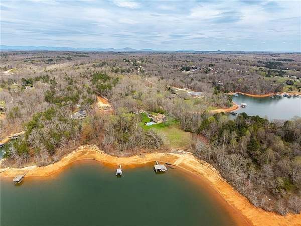 First Time Ever on the Market | Lakefront Estate with Private Dock, Guest Home & Pool Welcome to a rare opportunity to own a luxury lakefront estate set on 4.26 gently sloping acres with grass to the water one of the most desirable features for effortless lake living. This exceptional property offers direct lake frontage, a double-slip private dock, and the added advantage of bordering a 10-acre peninsula of protected US Army Corps of Engineers land, providing unmatched privacy and the ability to chase water levels even in drought conditions. A scenic quarter-mile private driveway creates a true estate feel, leading first to a turnkey guest house ideal for visitors, multi-generational living, or rental income and continuing to the main residence. The main home is thoughtfully designed for both entertaining and everyday comfort, featuring a primary suite on the main level, a spacious open-concept kitchen, generous living room, and a formal dining area. Upstairs includes four additional bedrooms plus a versatile flex space perfect for a media room, home office, or library. Step outside to your private outdoor retreat, complete with a fenced-in gunite pool perfect for summer entertaining, relaxing after a day on the lake, or creating a resort-style backyard experience.