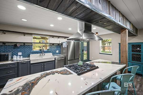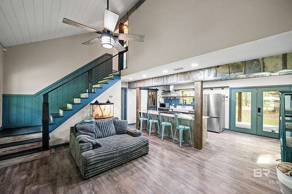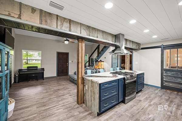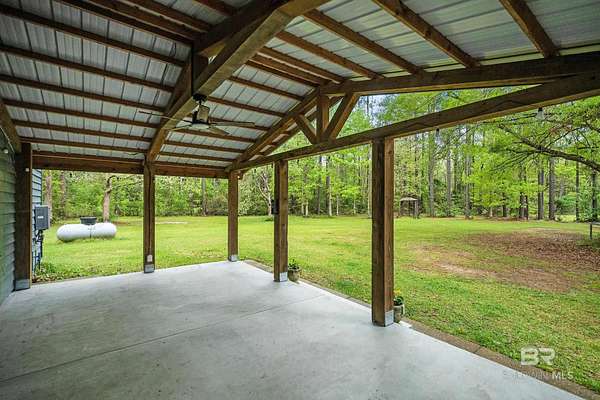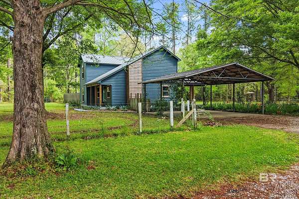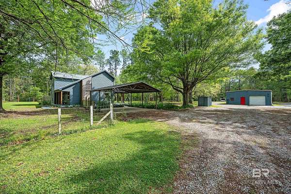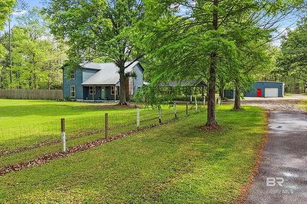 Est $2,293/moRenovated Farmhouse on 3 Acres + 57x30 Workshop. Updated 4BR/2BA farmhouse on 3 private acres featuring an open layout, high ceilings, and a spacious primary suite with jetted tub & separate shower. 57x30 commercial workshop with 4 roll-up doors, 50-amp service & RV hookup—ideal for business or hobbies. Fortified roof, tankless water heater, double carport, no HOA. Prime access to I-10, I-65 & Hwy 59. Move-in ready with endless potential. Buyer to verify all information during due diligence.