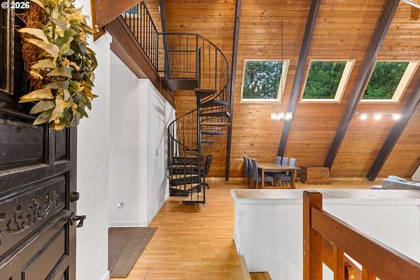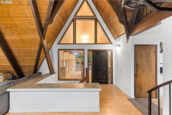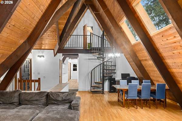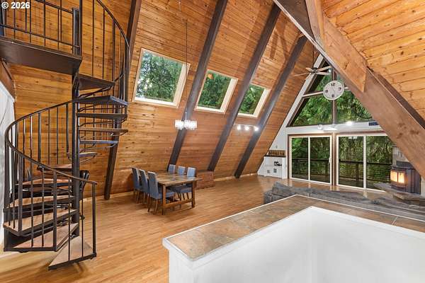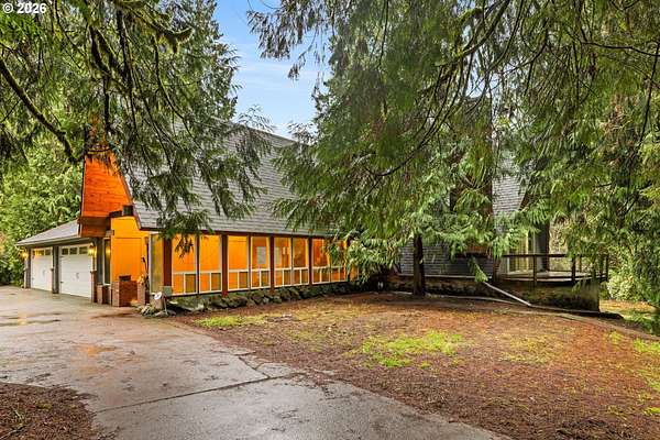 Tucked away on over 2 acres, this A-frame inspired retreat offers the perfect blend of architectural character, peaceful surroundings, and everyday convenience. A soaring wall of windows with a cozy, cabin-like feel creates a true nature escape, while still being just minutes from shopping, dining, and amenities in the tight-knit Sandy community. Plus, just a 35 minute drive to PDX, and 45 minutes to Government Camp, a location ideal for both recreational enthusiasts and city living.Beyond the charm, this home was designed with room to live and play. The property features 3+ bedrooms and 3 full bathrooms, including ensuite primary, an EV ready, four-car garage, above ground pool with pool house, an outbuilding and ample space for recreational vehicles, boats, tools, and hobbies. Everything you'd want all in one place. Highlighted updates and features include: A-frame entryway, roof, sky lights, windows, sliders, paint, remodeled kitchen and pantry, pellet stove, refreshed loft flex area, garage doors, outbuildings, well pump-house and EV hookup. Rarely do homes offer this level of privacy and proximity. Schedule your showing and see why this is one that truly needs to be experienced in person. Open Saturday and Sunday, 12pm-2pm.