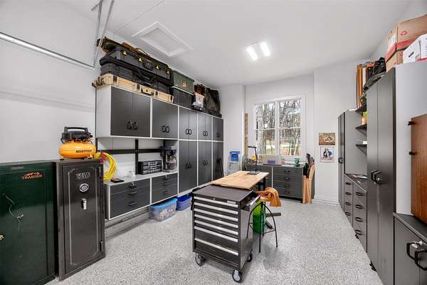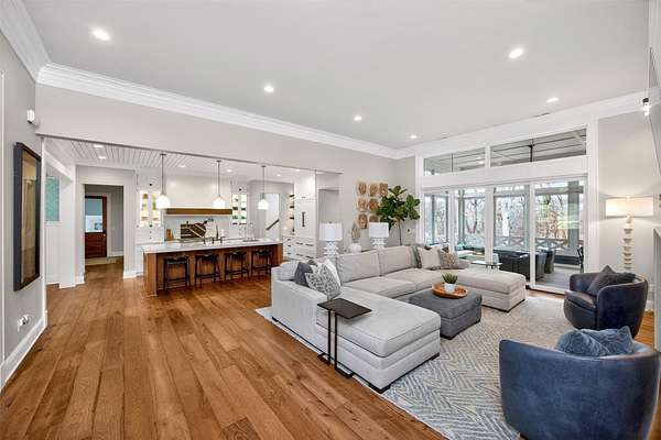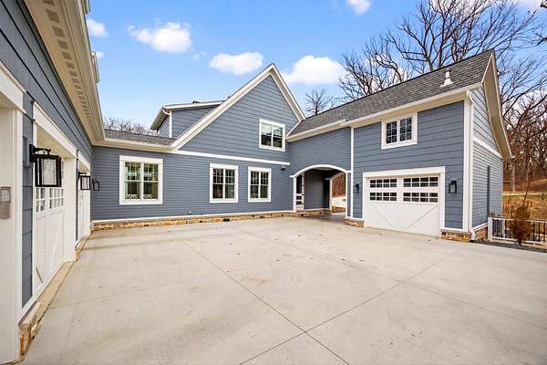 Tucked in the trees at the end of a long, private drive sits a truly distinctive home-thoughtfully designed, positioned, & built on 4.15 wooded acres with timbered land beyond. A classic porte cochere-an arched pass-through connecting the home to a heated/cooled single-car garage/shop, leads to a private courtyard, discreetly concealing the oversized, heated 3-car attached garage. Inside, nearly 6,000 finished sq ft unfolds to 12' great room ceilings, marble tile, European oak hardwood flooring, glass doorknobs & exquisite trim details throughout. The open-concept kitchen, living & dining spaces flow effortlessly with the main-level owner's suite tucked away, offering backyard access, his/her walk-in closets, soaker tub, tile shower & split vanities. The kitchen is designed to impress & perform w/ a 48" range, custom hood, paneled appliances & walk-through pantry w/ chef's doors, beverage fridge & plenty of storage. A private office, laundry, powder room, & mudroom are concealed behind the kitchen. 4 additional bedrooms, all w/ walk-in closets span upper & lower levels, along w/ a bonus flex space w/ built-ins at the top of the stairs. The lower level features 10' ceilings w/ a golf simulator, generous wet bar, gathering space, & rec area. Outside, enjoy a screened porch, fire pit area, pool spa & resistance lap pool, putting green & serene wooded views. Just a stones throw to Saylorville Lake & trails, schools, Prairie Trail & just 20 min to downtown, yet feels worlds away.