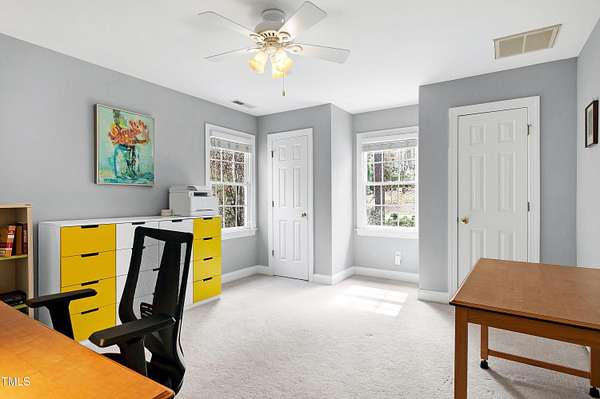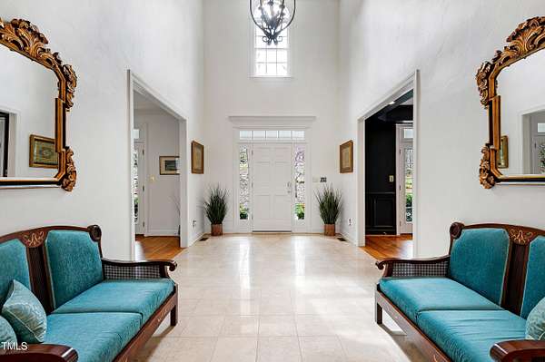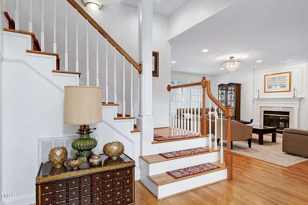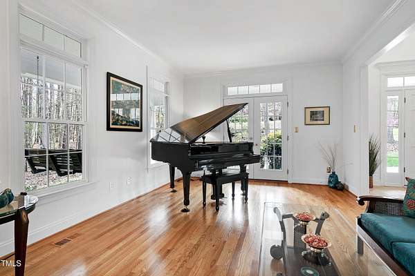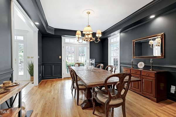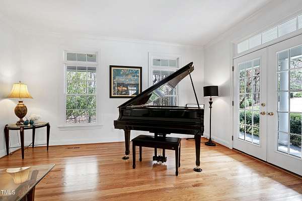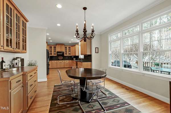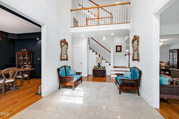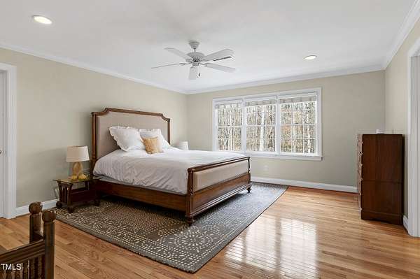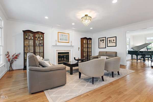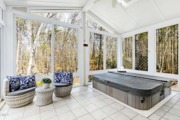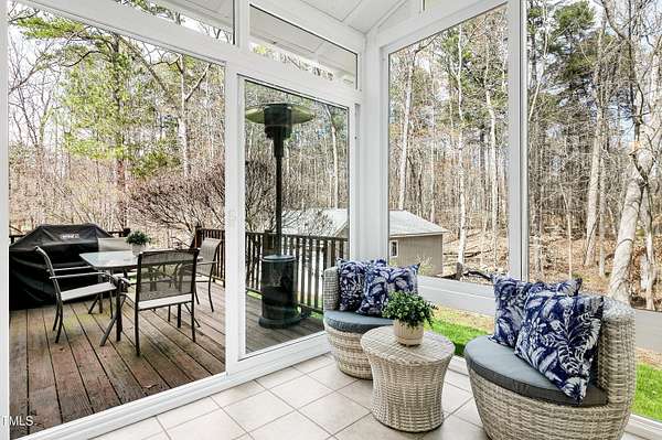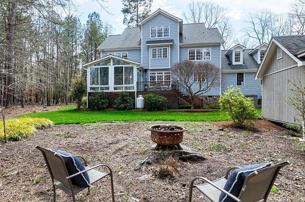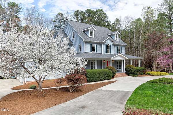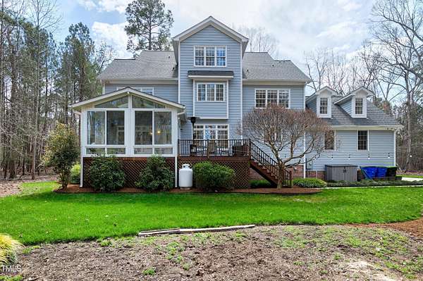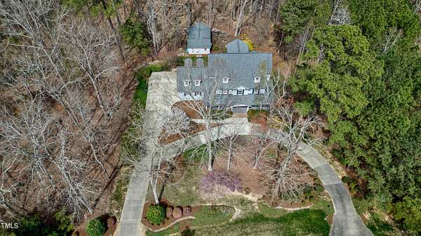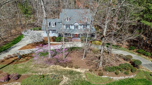 AMAZING Price Reduction: This luxurious home is situated on over 3+ acres of pristine woodland with a serene, landscaped yard. As you approach this lovely home in the prestigious North Hill subdivision, you are welcomed by a circular driveway that provides a grand entrance, while the meticulously landscaped grounds offer a haven for the home. The inviting front porch with a surround of French doors is the perfect place to relax and admire the beauty of blossoming trees and lush landscaping. This home boasts 5 bedrooms, 5 bathrooms, an office, a bonus room, a sunroom with jacuzzi, and a fully heated and cooled workshop or garden shed. The Owner's Suite closet is every person's desire for a closet - a huge walk-in closet and so spacious. The Dining Room and Living Room have French Doors that open out to the front porch. The Family Room is spacious and has a great view of the Sunroom and yard. The third floor hosts the 5th bedroom, full bathroom, office, and bonus room - a total of 1167 sq. ft. It is the perfect place if you are working from home, pursuing hobbies, seeking a quiet retreat, or need multi-generational living. The home is located in the desirable East Chapel Hill High School zone. Its convenient proximity to the area's finest shopping, dining, and cultural attractions is an extra plus. It is minutes from UNC Chapel Hill, Duke University, RTP, and RDU. Meticulously maintained and thoughtfully upgraded, this home features a new roof installed in 2018 and high-efficiency Trane HVAC systems added in 2021 to serve the first and second floors. A NEW tankless water heater in April 2025, complementing the water softener system added in 2022. The first-floor HVAC and cooking range are serviced by natural gas, while propane (leased) fuels the fireplace, outdoor grill, and workshop. Additional enhancements include a moisture barrier and sump pump in the crawl space and a natural gas connection installed in 2021. In 2024, new PEX water piping with crimp rings was installed, along with frost-proof hose bibs, washing machine and icemaker valves, and a new main water shutoff. Recent upgrades also include a built-in microwave, a replaced effluent pump in the septic system, and a new outdoor pump alarm control box with updated floats. The property is equipped with an invisible fence, a sprinkler system, and full local area network wiring. This exceptional home offers a rare blend of elegance, modern convenience, and thoughtful upgrades, making it the perfect sanctuary in a highly desirable location.