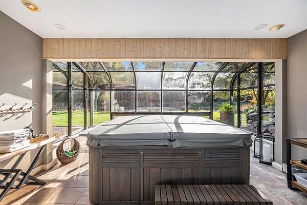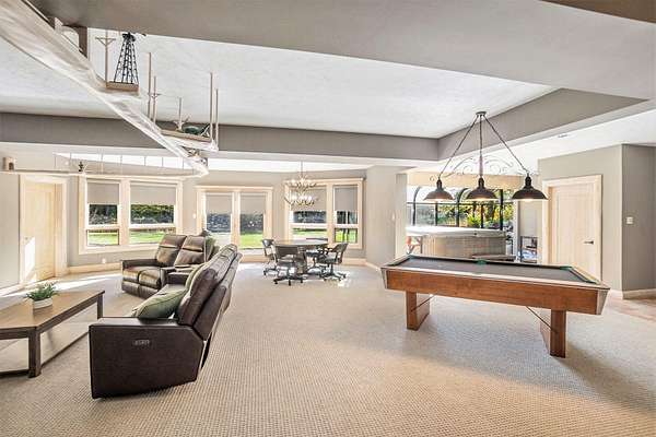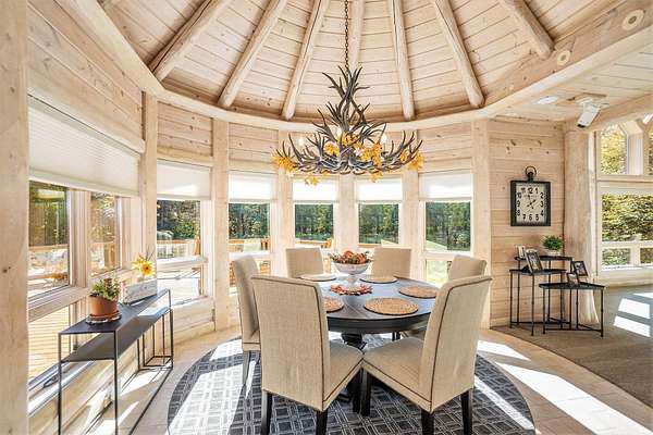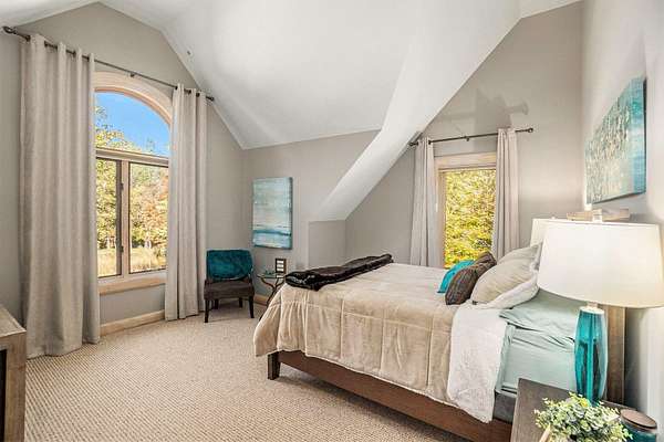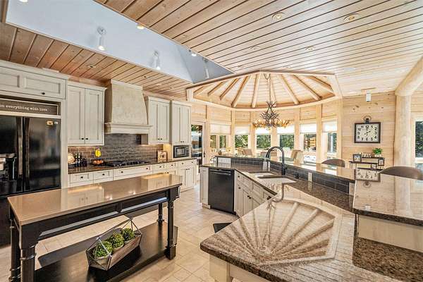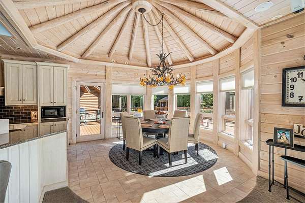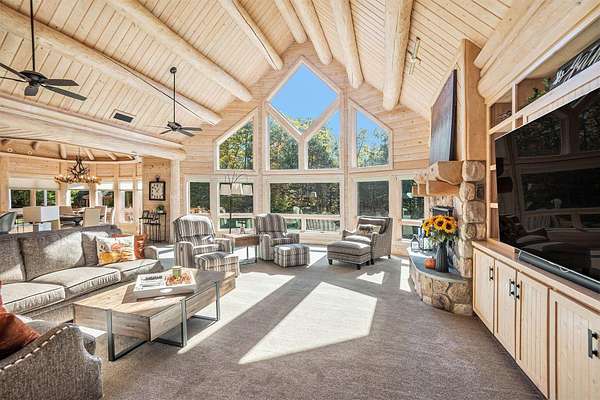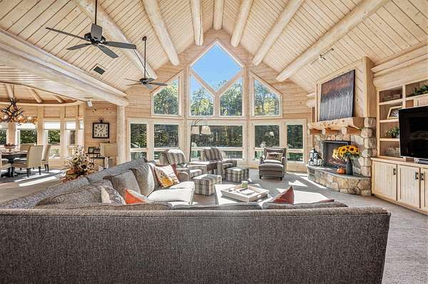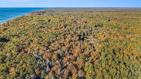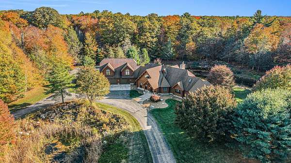 Featured on the cover of Log Home Design Ideas, this custom 8,000 sq. ft. White Cedar masterpiece blends rustic grandeur with modern luxury. Situated on 40 acres of hardwoods and evergreens across from Lake Michigan, the estate features award-winning landscaping with four waterfalls, a babbling brook, and a mile-long private trail for nature walks and skiing. The Residence The interior features light cedar logs and soaring vaulted ceilings. The Great Room's 20-foot wall of windows and massive stone fireplace create a breathtaking focal point. A gourmet kitchen boasts granite counters, a walk-in pantry with a full-size refrigerator, and a radial breakfast bay with motorized blinds. The Master Retreat offers a gas fireplace and a spa bath with a walk-in shower and dual-zone heating. A dedicated office wing includes two built-in desks, a computer room, and a private bath--perfect for a home business. Entertainment & Amenities The upper guest wing features three ensuite bedrooms and a common sitting area. The lower walk-out level is designed for hosting, complete with a large wet bar, game area, exercise room, and a solarium with a hot tub. Premium Systems Technology: Crestron-controlled theaters, Lutron lighting, and Ethernet throughout. Infrastructure: In-floor radiant heat (including the 6-stall drive-through garage), ERV clean-air system, and snow-melt entry. Storage: A 1,300 sq. ft. storage room plus extensive closet walls. Located 10 minutes from White Lake Yacht Club, this estate is the ultimate sanctuary for the discerning buyer. 3424 Scenic Drive, North Muskegon, MI 49445. BEDROOMS 5, SQUARE FEET 7,900, BATHROOMS 7