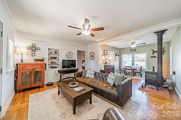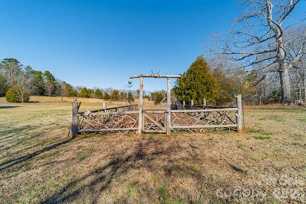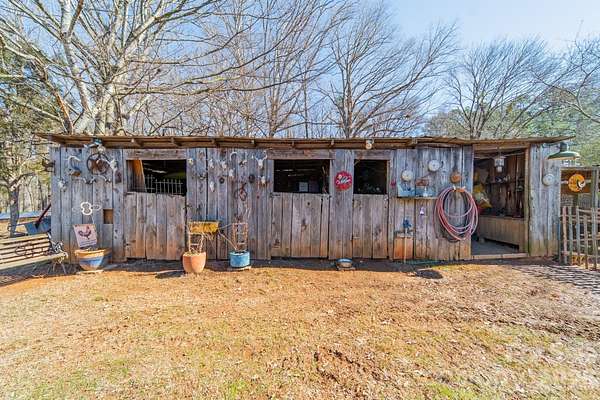 Experience the best of country living in this beautifully updated, cottage-style home set on approximately 9.4 private acres. Bursting with charm and character, this home features gorgeous hardwood floors, original shiplap accents in the living area, an updated bathroom, and a cozy woodstove that adds both warmth and personality. The modernized kitchen blends thoughtful updates with the home's character, creating a space that feels both functional and inviting. Outside, the property truly shines with a peaceful, homestead-style setting. Mature pecans, persimmon, and pear trees provide fruit, while a fenced garden area includes a thriving asparagus patch. The pasture is ideal for horses and includes a small barn with stalls, hay storage, and a tack room. A chicken coop and run complete the setup, offering everything you need for a true farm-to-table lifestyle. Perfectly situated just outside the city, this serene retreat offers the best of both worlds-quiet country living with easy access to everyday conveniences. Located less than 10 minutes from shopping, 15 minutes from Charlotte, and only 30 minutes to Uptown, this one-of-a-kind property is the perfect blend of tranquility, charm, and convenience.