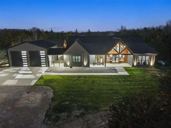 This stunning barndominium is the ultimate blend of country charm and modern luxury. Barndominium Life's most popular floor plan, this home was built and owned by the original designer. Perfectly situated just 15 minutes from the renowned Lake Fork and only an hour from Dallas, this home offers an unbeatable location for those seeking tranquility and convenience.