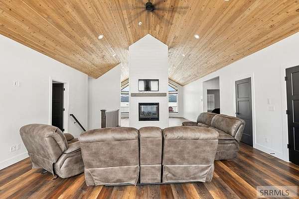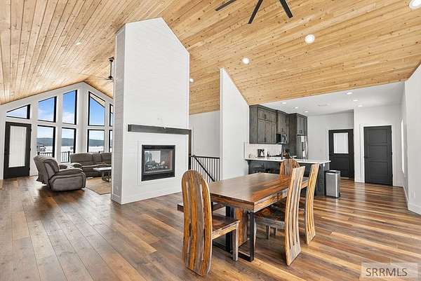 Discover comfort, space, and proven income in Centennial Shores - a gated community with private boat docks and direct access to Island Park Reservoir. This 3,459 sq ft cabin on 2 acres offers 5 bedrooms and 5 bathrooms, including two primary suites, a full kitchen, and a separate kitchenette. Designed for large groups or multi-family stays, it's sold fully furnished and turnkey. From January through October, the property has already produced over $80,000 in rental revenue and maintains a 4.98 Airbnb rating, showcasing its strong performance and guest appeal. A shop can be added at the buyer's request for an additional cost. Located in one of Island Park's most desirable neighborhoods, this cabin blends outdoor adventure with outstanding rental potential. HOA dues are $550/year.