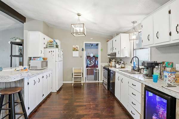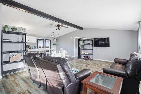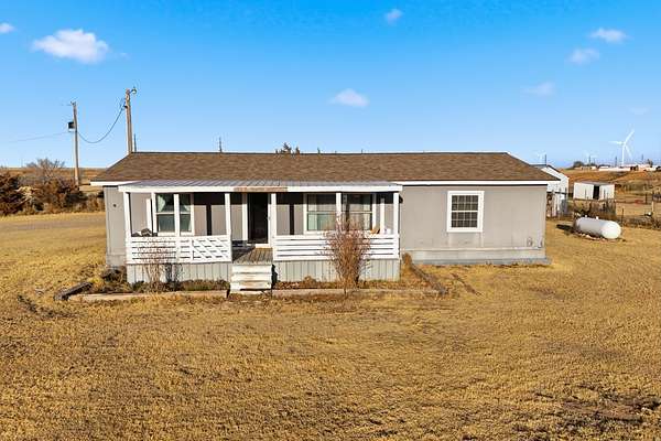 Welcome to your country escape just south of Guymon on Old Highway 136. This well-maintained three-bedroom, two-bath manufactured home sits on a beautiful 15-acre tract, offering the perfect setup for a farmhouse lifestyle or homestead dream. Enjoy quiet mornings and wide-open views from the covered front and back porches, ideal for relaxing or entertaining. The home features a new roof, an updated kitchen, and new flooring in the living room and laundry room, providing both comfort and peace of mind. All appliances remain with the property, including the stove, refrigerator, microwave, deep freezer, washer, and dryer, making this home truly move-in ready. The land offers ample pasture space with room for livestock and animals, complete with a tack shed and stalls/animal shelter to support a working homestead or small ag operation. A 30' x 40' metal shop adds excellent functionality for storage, equipment, or hobbies. If you're looking for space, privacy, and the opportunity to start your homestead or enjoy country living with modern updates, this property checks all the boxes. Schedule your showing today!