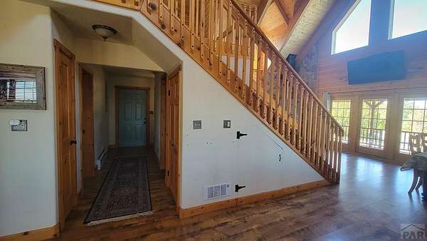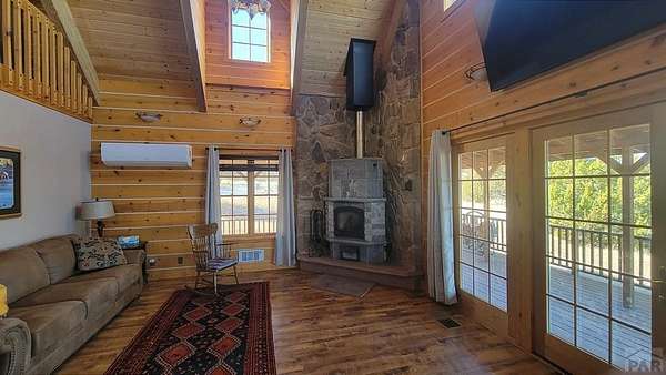 Quiet enjoyment could be in your vocabulary in the near future. Feast your eyes on this spectacular property and see what all is has to offer. Incredible 50 mile views of the Southern Colorado Arkansas Valley and Rocky Mountain Range including the world famous Pikes Peak and Pueblo Reservoir. Nestled in the foothills of the Wet Mountains, this property has exclusive access to State Public Grounds offering thousands of acres to hike and hunt. Secure and gated subdivision with a handful of like-minded neighbors who appreciate the quiet life. The cozy and spacious home is a log sided beauty with thoughtful aspects throughout. The main floor consists of a master bedroom, laundry room, full bathroom, beautiful kitchen with eating nook and spacious great room with fireplace. The upper level is 2 bedrooms, large bathroom with step-in shower and beautiful tile accents. A cozy loft with flexible use creates a perfect living arrangement. Walk-around, covered deck creates outside usable area on all sides of the home. The property is fenced and home is further fenced to keep grazing cattle at a distance. Horse-friendly with lean-to shelter and running water. RV hookups including water, dump, and electricity. FIBER in road and gig-speeds available! Easy commute to Pueblo 360 days a year.