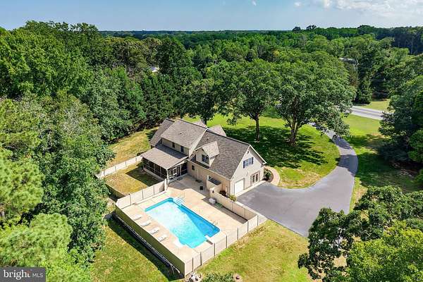 GREEN ACRES! Nestled on 1.8 serene acres in Dagsboro, this stunning 4-bedroom, 3.5-bathroom home offers the perfect blend of privacy, comfort, and luxury. Boasting an open floorplan ideal for both everyday living and entertaining. Upon entering, you have a formal dining room, as well as sitting room, which both open up to the living room and kitchen. Additionally, you have a large first floor primary suite with dual walk in closets, soaking tub and more. Upstairs are 2 additional bedrooms with full bath, office/loft space, additional suite with private bathroom and a large bonus room, perfect for a gym, movie room or more. Private elevator in the garage takes you up to the second floor for ease of access. Off the rear of the home there is an airy screened porch which connects to your own backyard oasis complete with a private pool, expansive patio space, and tranquil views of the surrounding woods. Backing to mature trees and offering exceptional seclusion, this property provides a rare opportunity to enjoy peaceful, upscale living just minutes from the beaches, shopping, and dining of coastal Delaware. Oversized lot allows for the possibility of expansion with additional garage, sheds or more!