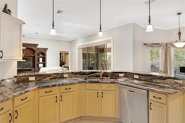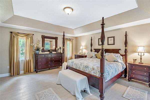 - Ceiling Fans(s), Crown Molding, Eat-In Kitchen, High Ceilings, Open Floorplan, Split Bedroom, Tray Ceiling(s), Walk-In Closet(s), Window Treatments