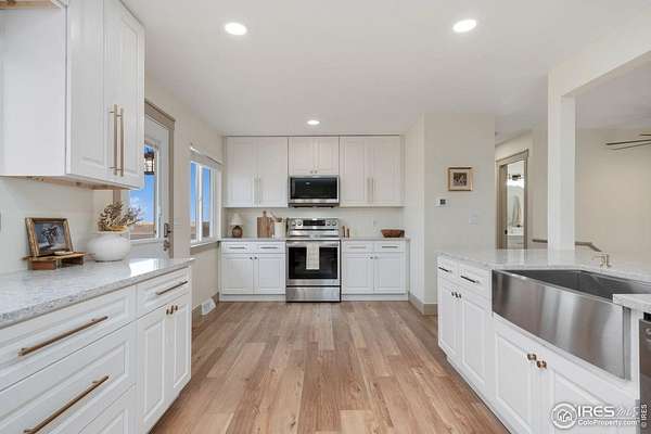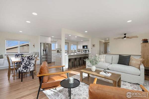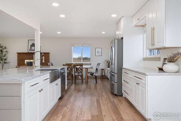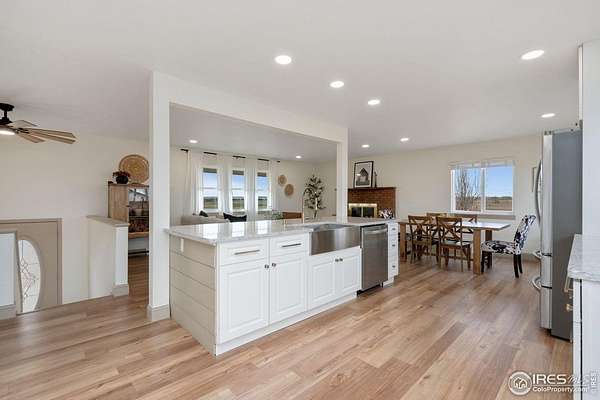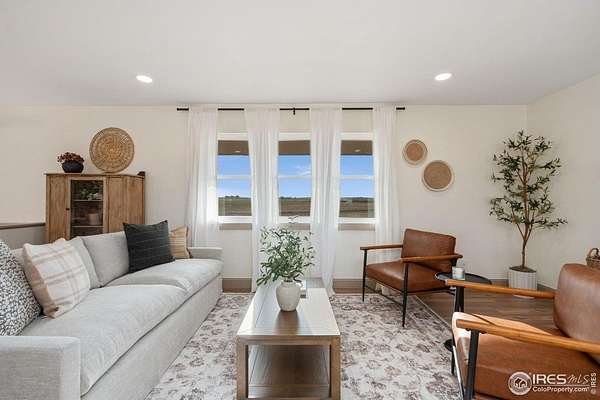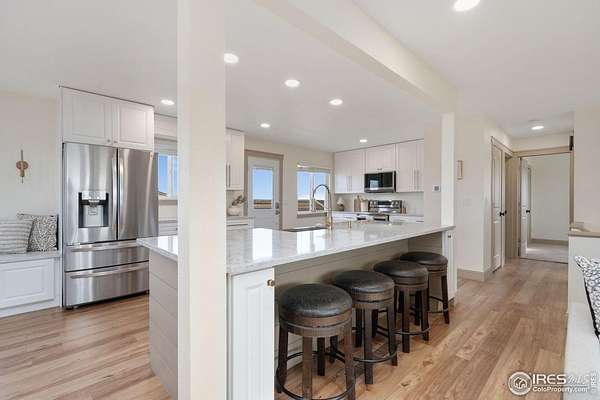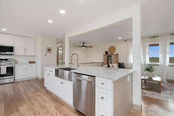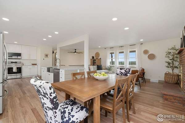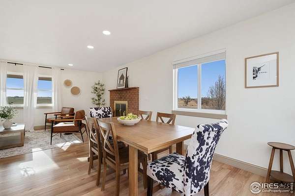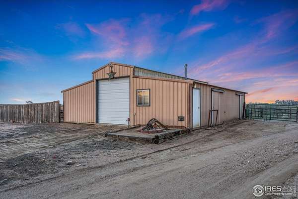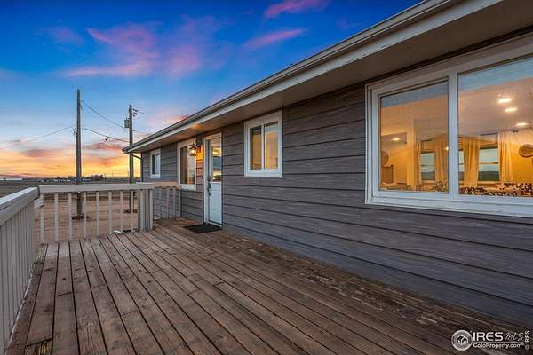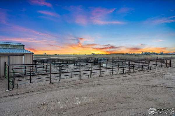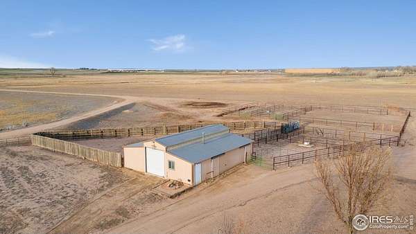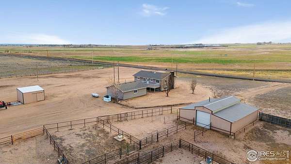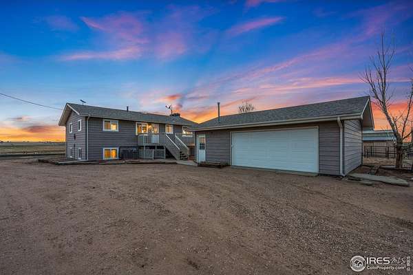Welcome to your dream country retreat located 20 minutes North of Greeley! This beautifully renovated, stick-built, 4-bedroom, 2-bathroom home offers an updated living space on a sprawling 7-acre lot, perfectly blending rural tranquility with contemporary comfort. Step inside to discover a wealth of recent upgrades, including fresh interior and exterior paint, new carpet, and stylish wide plank LVP flooring throughout. The heart of the home is the newly remodeled kitchen, boasting quartz countertops, new dovetail cabinets with soft-close drawers, an undermount farmhouse sink, and brand-new LG appliances. Enjoy meals in the kitchen with access to the 224 sq. ft. deck, perfect for outdoor entertaining. Recent renovations include new windows throughout the house, a new furnace, a new hot water heater, a new AC unit, LED lighting, new doors, and 6' baseboards. Bathrooms are beautifully appointed with tile showers (floor to ceiling in both bathrooms), new tile flooring, and new vanities. For the equestrian enthusiast or hobby farmer, this property is turn-key! It features a 1440 sq. ft. barn with a pull-through design, two oversized garage doors, insulation, 4 horse stalls, 7 paddocks/runs, water and electrical service, a tack room, and 4 automatic waterers that are insulated and heated. Additionally, there is a 665 sq. ft. detached 2.5 car garage with a new garage door, a workbench, and electrical service. The property is fully fenced, accessible via a county road paved with crushed asphalt from Highway 392, and includes paid-for Starlink internet service, water from North Weld Water Tap, propane, and a septic tank/leach field.