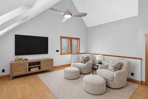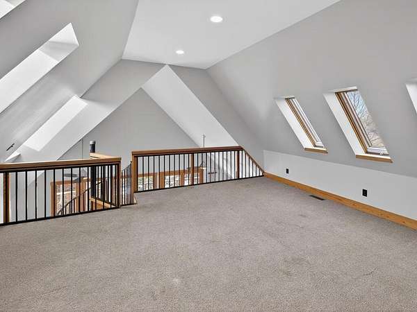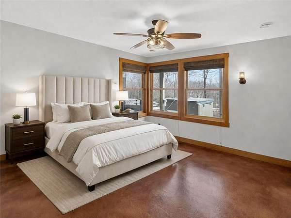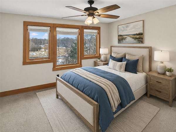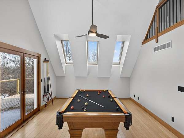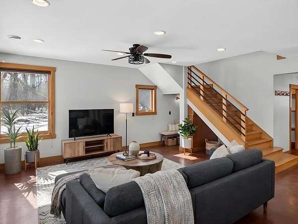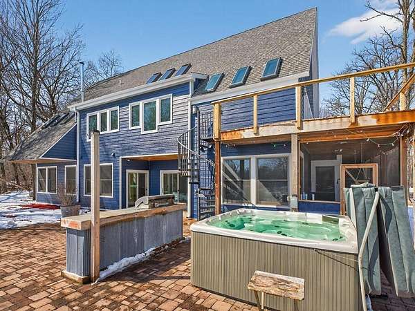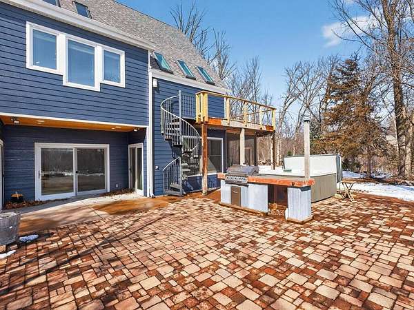 Outdoor living is truly exceptional. Gather beneath the stars at the fire ring, unwind in the six-person hot tub, or entertain with ease from the outdoor kitchen, screened porch, paver patio, and newly updated deck. A man-made pond awaits koi, while raised garden beds, mature trees, and abundant wildlife create a setting that feels wonderfully secluded. Beyond your backyard, explore 85 acres of private maintained trails winding through the community with access points to the Sunrise River, picnic tables, and a scenic overlook above the babbling brook. Launch your kayak or canoe and experience the landscape from the water.