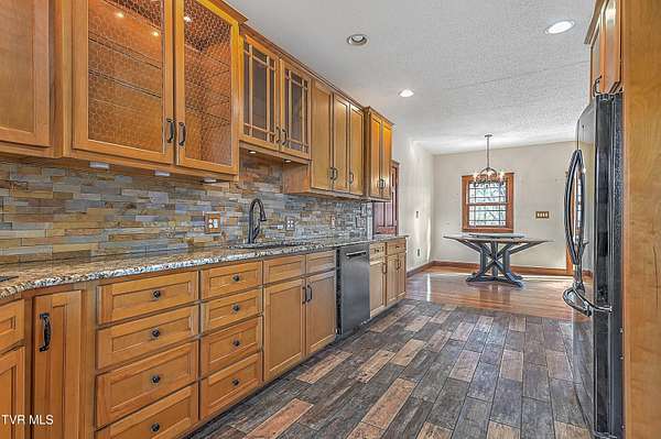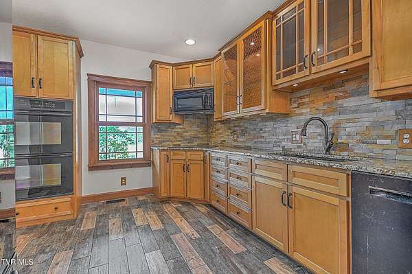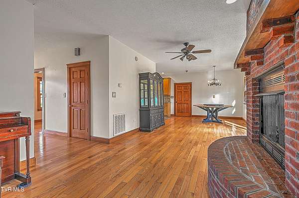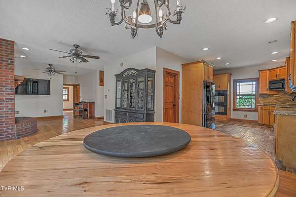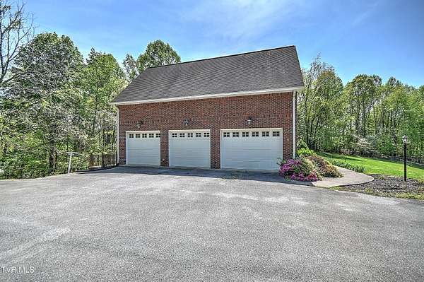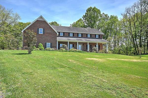 If you're in need of space, storage, and FOUR primary suites (yes, you read that correctly), then this traditional brick home in Blountville is the one for you. Finding a quality-built brick home with over 5,000 square feet for under $600,000 is nearly impossible! Nestled on just under 2 acres and situated against the privacy of wooded acreage, you'll find 3 large garage bays attached to the home's main level. It is on this main level you'll find a gorgeous kitchen with custom cabinets, granite countertops, a large farmhouse sink, double ovens, and a dining nook as well as a traditional dining room. Cozy up by the stunning brick fireplace in the living room which leads out to the back deck. There is a half-bath in the laundry room, and, more importantly, a primary suite on this main level as well. For anyone wanting to avoid steps, find everything you need on this one level. Upstairs, however, you'll find even more living space in the enormous bonus room. THREE, yes, three more primary suites await you upstairs. All three of these bedrooms feature walk-in closets, but one bedroom in particular will blow you away with 4 closets! Each bedroom has its own bathroom so nobody has to share. An enormous bonus room gives you space for a secondary living room, play room, media room, home office...the possibilities are endless! With over 4100 finished square feet, you'll surely find the space you need to spread out. But wait-that's not all! An additional driveway leading to the back of the house also provides yet another garage bay attached to the 1550 square feet of unfinished storage and workshop space. Need parking space for an RV? You got it. Have a boat you need to store during the off-season? There is more than enough room here. And if that still isn't enough, the dog kennel outside provides even more storage possibilities. All appliances convey, as does the chicken coop and the round dining room table. Shared driveway documents can be found in MLS listing. All information herein deemed to be reliable but not guaranteed. Buyer/buyer's agent to verify all information. Check out the immersive 3D virtual tour to explore this unique property, or better yet-call your favorite realtor to schedule a showing today! **Please note: While the main floor living room appears small, the sellers at one point had a sectional couch, recliner, and a coffee table situated around the TV which was on the wall opposite the fireplace. Also, work is being done on the gravel portion of the driveway beginning mid-September. If using GPS to find the property, use 419 Barr Road to find the driveway entrance. Sign at road.