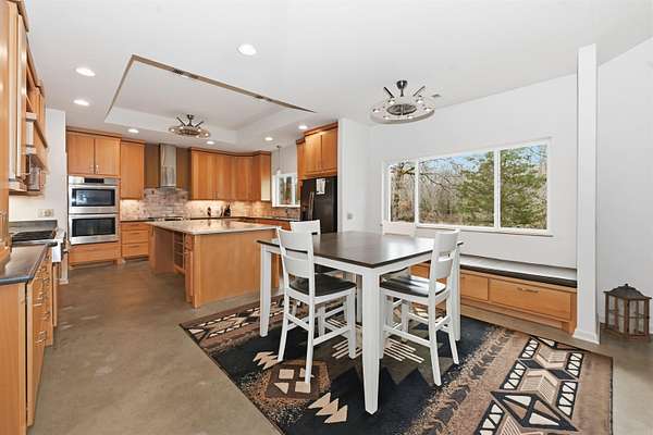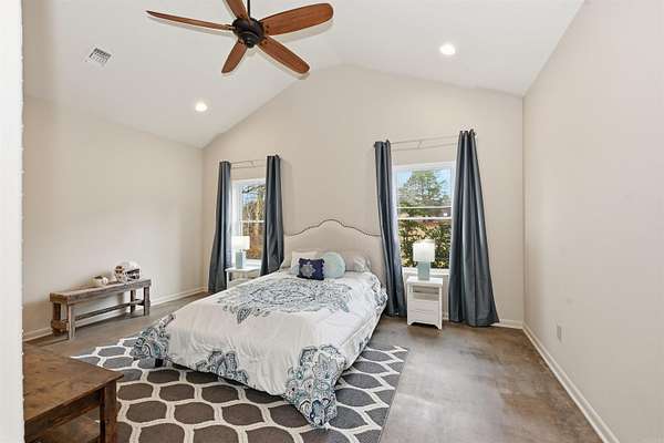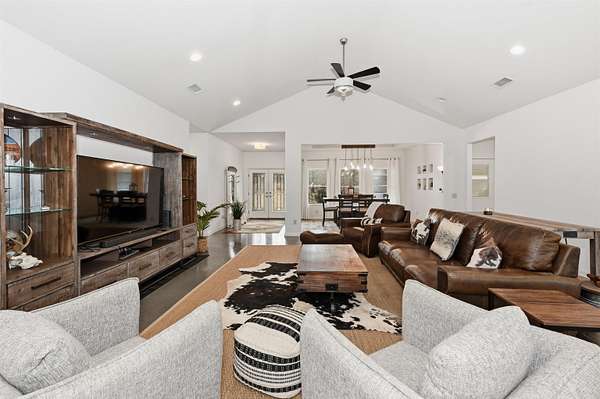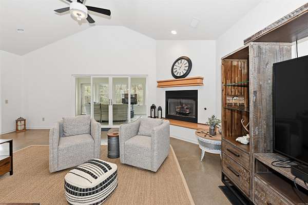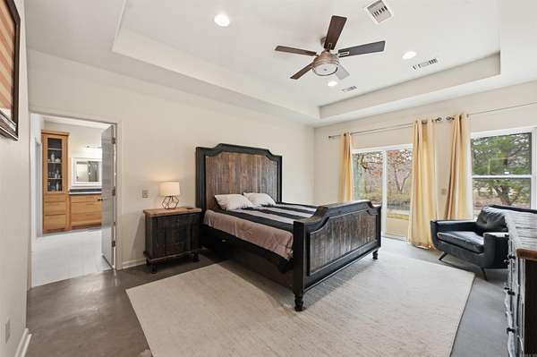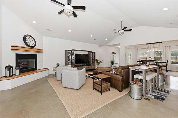 This custom-built, single-level waterfront home offers 3 bedrooms and 3.5 bathrooms, along with a formal dining room, spacious eat-in kitchen, and a bright sunroom designed to capture serene views. With a total of four garage spaces, there is ample room for vehicles and storage. The well-appointed kitchen is a chef's dream, featuring two stoves, three ovens, abundant cabinetry, a large island, and a walk-in pantry. The primary and guest bathrooms both include heated floors for added comfort. The laundry room is generously sized, complete with space for a refrigerator with an ice-maker connection, and is conveniently located near the attached side-loading two-car garage. In addition to the main residence, a 40x60 shop provides exceptional versatility. It includes a two-car garage, a half bathroom with two sinks, a storage room, and private guest quarters offering one bedroom, one bathroom, a kitchen, living area, and washer/dryer space (guest quarters square footage not included in the 3,071 sq. ft. main home). Situated on just over three acres along the Mazarn River and Lake Hamilton, this property offers peaceful waterfront living with abundant wildlife and picturesque views right