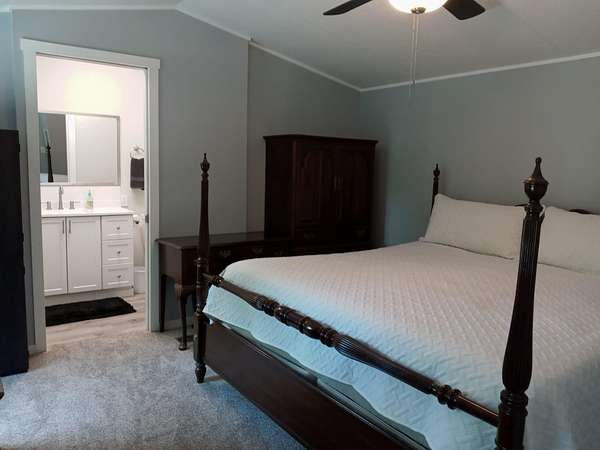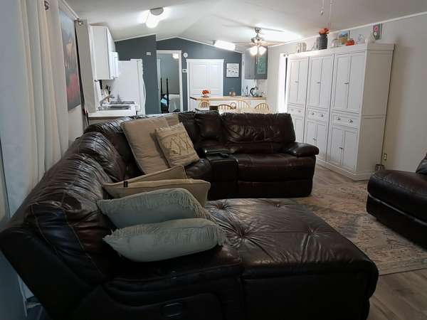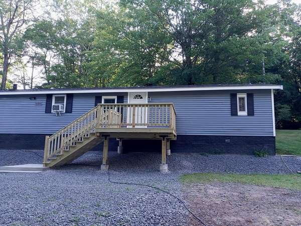 3 Bd 2 bath 980 Sq. ft manufactured home on 3.91 acres- All new windows, interior/exterior doors New front deck and refurbished back deck New roof/eaves All new flooring and carpets NYS installed under home insulation New plumbing New fridge, dishwasher and washer/dryer combo New lighting and ceiling fans 2 High efficiency room A/C's Wood fireplace New kitchen and separate Bakers' bar with another sink 2 Large sheds All new paint in/out Price includes most furnishings and 34.5 5th wheel trailer connected to water and elec. (Can send pics separately) Great guest quarters or perhaps an income opportunity. Also riding mower and catcher. Home is close to attractions like Resorts World Casino, the Kartrite water park, and Monticello Raceway and many lakes. Don't miss the chance to make this charming property yours!