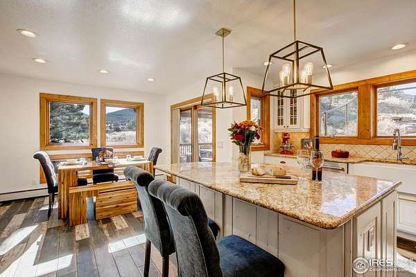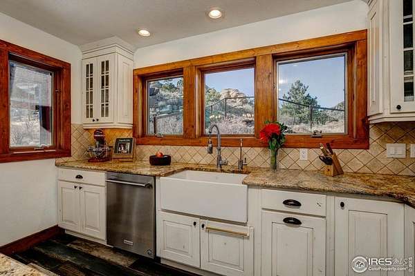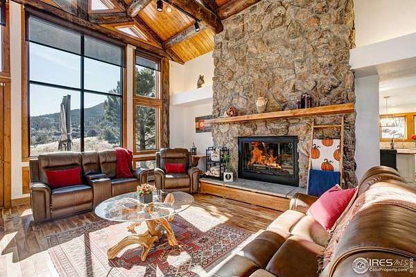 A very special property that is quiet, inviting, and perfectly at ease in a natural environment, this home sits at the top of Ute Lane-private yet convenient to town. Surrounded by whispering pines, rock outcroppings, and wildlife, a property that celebrates the mountain lifestyle without sacrificing accessibility or comfort. This 4-bedroom, 3-bath, 3,200 SF home including two parcels totaling 1.86 acres offers stunning views. The second parcel is safeguarded by the local Land Trust, providing permanently protected open space that enhances the property's value, privacy, views, and wildlife presence. Furnishings are available by separate bill of sale. The light-filled living room is complete with vaulted log-beamed ceilings, tongue-and-groove finishes, Australian Acacia hardwood floors, and a moss rock fireplace to anchor the space. It is complemented by custom built-ins and log-framed picture windows. The chef's kitchen has upgraded appliances, including a Professional Chef Connect Oven with 6 gas burners, WiFi, and more. The ceramic tile wood plank flooring and ample counter and cabinet space make a true culinary workspace. The main-level primary suite opens to a private deck with mountain views, ideal for morning coffee or a hot tub. Also on the main level is a flexible den, creative studio, office or bedroom with built-in cabinets, shelving and a bay window. This is truly main level living. Upstairs you will find two spacious guest bedrooms - each with bay windows, bench storage and a full bath. You will also find an additional room that provides options for a guest nook, hobby space, or storage. Enjoy the private outside area with views on the extended stamped concrete deck off the living room. Ring camera security system and Flo by Moen smart water shut-off safety system. See feature details in the document section.