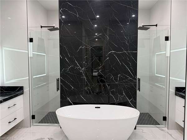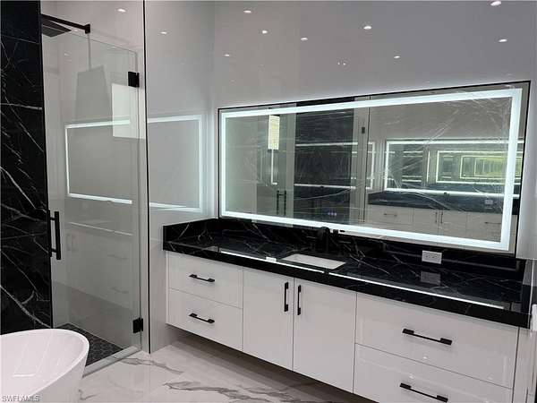 . 100% uplands. This exquisite new-construction residence offers the perfect fusion of sophistication, comfort, and smart design. The home welcomes you with a spacious paver driveway, electric gate, and full perimeter fencing, providing both privacy and curb appeal enhanced by upgraded landscaping and a full irrigation system. Inside, every detail has been thoughtfully curated from the custom designer ceilings with led lighting . The designer kitchen features custom cabinetry and thermador appliance package, all complemented by upgraded exotic quartzite countertops with a waterfall island edge and elegant floating bathroom vanities . Luxury continues throughout with porcelain-tiled bathrooms floor-to-ceiling, and lighted mirrors in every bath. The home is truly built for refined living and entertaining, offering a fully wrapped granite outdoor kitchen with stainless steel gas cooktop, sink , under-counter refrigerators, and ample cabinetry for effortless hosting. Step outside to your private resort-style pool and spa, picture-window screen enclosure, and lush tropical landscaping that enhances privacy, while the insulated garage doors and epoxy floors. This home meticulous attention to detail. Blending modern innovation, high-end finishes, and timeless design, this home delivers a rare level of luxury and craftsmanship inside and out. Combines the freedom of acreage with the convenience of city living: - Near top-rated schools - Minutes to shopping & dining - Quick access to I-75 - Close to beaches, including Vanderbilt Beach - Located in a high-value growth corridor Homes with acreage this close to Naples are rare -