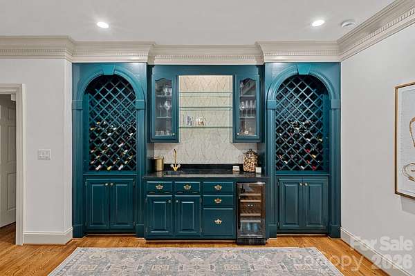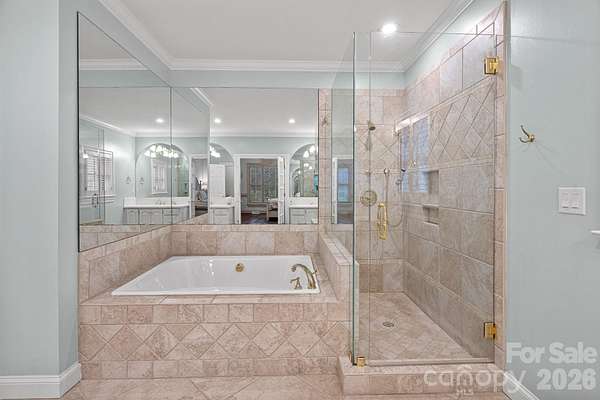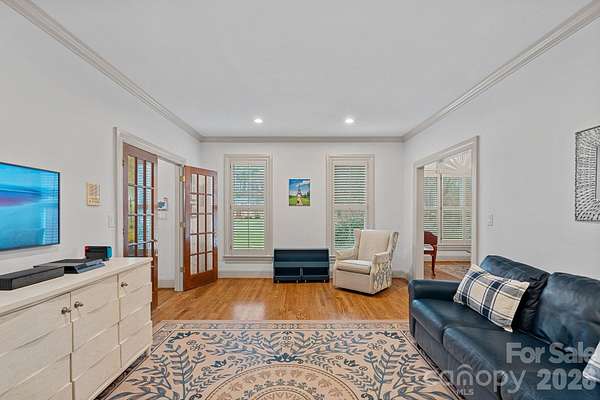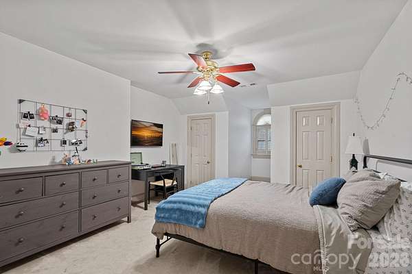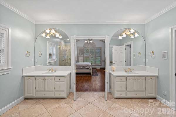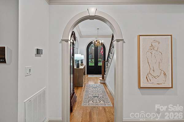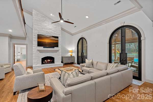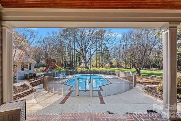 A rare offering on one of Providence Plantation's most picturesque streets, Gray Moss Road. Positioned on a quiet cul-de-sac and set across 1.94 acres of level, manicured grounds, this distinguished full-brick estate offers over 5,000 square feet of curated living space designed for both elevated entertaining and refined everyday comfort. A circular drive creates an impressive arrival, leading to striking custom 9.5-foot-tall, 5-foot-wide steel doors handcrafted by TLG Doors, immediately setting the tone for the craftsmanship and architectural presence carried throughout the home. Inside, rich hardwood floors extend across the main level, connecting expansive living spaces with warmth and timeless elegance. The dramatic two-story family room, anchored by a stunning stone fireplace, creates architectural presence while remaining welcoming and livable. A matching custom door system opens to the covered porch, allowing for a seamless transition to the pool and backyard and creating an effortless indoor-outdoor lifestyle rarely found in this community. One of the most compelling features of this home is how it lives like a ranch, with the majority of bedrooms and bathrooms located on the main level. The primary suite serves as a true retreat, complete with its own sitting room, fireplace, and dedicated four-seasons room currently used as an office, offering both luxury and functionality. Two additional main-level bedrooms each feature their own full bath, making the layout ideal for guests, family members, or multigenerational living. With so much daily living space on one level, the home offers the comfort and convenience typically associated with ranch-style homes while maintaining the scale and presence of a grand estate. Upstairs, you will find two additional bedrooms, a separate loft area, and one bedroom that features its own connected loft space, perfect for a study zone or private lounge. A large bonus room situated over the three-car garage provides excellent separation from the main living areas and offers flexibility for a media room, recreation space, gym, or playroom. The outdoor setting is equally impressive. The nearly two-acre superior lot provides exceptional privacy and usable space, centered around the pool and expansive lawn. A dedicated fire pit area creates the perfect backdrop for evenings under the Carolina sky. Near the pool, a detached structure adds remarkable versatility. Designed with a garage-style door and currently outfitted with indoor climbing walls, and gym equipment, this flexible space can serve as a playroom, gym, studio, workshop, equipment storage, or tractor shed depending on your needs. A three-car garage completes the home's balance of sophistication and practicality. Set in one of Charlotte's most established and sought-after neighborhoods and served by award-winning schools - with JM Robinson Middle School beginning in the 2026-2027 school year - this property delivers scale, privacy, architectural detail, and enduring quality in a way that is increasingly rare in Providence Plantation. 3430 Gray Moss Road is more than a home - it is a legacy property designed for the way you want to live.
