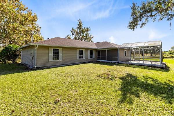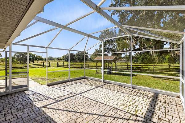 Welcome to the perfect blend of comfort, space, and country charm! Mature trees greet you as you enter the property on your way to the quaint wooden bridge that leads to this spacious fully fenced pastures. Situated on a beautiful 4.73 acre lot, this property provides privacy and plenty of room to enjoy the outdoors and bring the horses! Only a short drive to shopping, dining, and entertainment. The bright, open layout is perfect for both relaxing and entertaining. Whether you are looking for a peaceful retreat, room to grow, or a place to make your own, this property checks all the boxes! Patio screens will be repaired before closing.