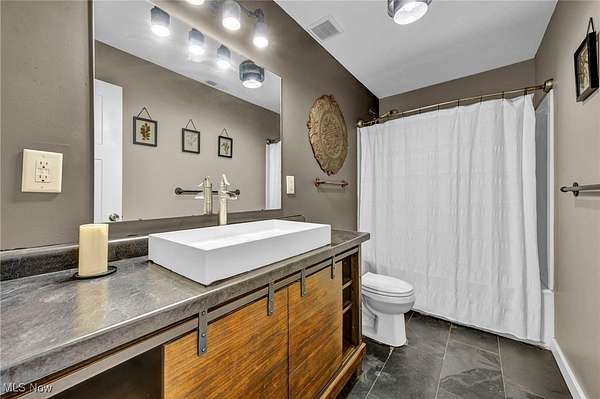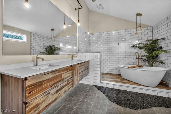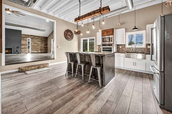 Stunning single family ranch style home in the quiet suburban area of Columbia Station. Minutes from Southpark shopping area. Front porch area with room for sitting welcomes you to come inside to lead you through the inviting hallway to the kitchen area. Kitchen is fully modernized with a rustic feel and remodeled with newer Kitchenaid appliances: Fridge, cooktop, oven, microwave, and dishwasher. Solid surface counters with tile backsplash, more than enough cabinet space, barn door style pantry, and three person seating at the kitchen island. Kitchen fills with plenty of natural lighting. Laminate and tile flooring throughout for durability and easy cleaning. Main bedroom on first level with walk in closet. Attached to main bedroom is a glamour bath (duel vanity sinks, large walk in shower with soaking tub) creates a calming and relaxing atmosphere. Two larger bedrooms on main floor for guest rooms or office. Two large closets in the main hallway with barn style doors. The very large living/family room with high vaulted ceilings allows for memorable family gatherings or relaxing movie nights. Built in wet bar with fridge for easy access to drinks and snacks. The family room transitions seamlessly outdoors to the covered patio, additional concrete pad for BBQ and finally a fire pit for storytelling and making smores. Large grass and landscaped lot truly gives you the feeling of open space and suburban vibes. Two car garage provides plenty of storage for two cars and equipment including a couple extra parking spaces to the side of the driveway. This ranch is waiting for you to move right in and enjoy all of its amenities. Pets considered on a case by case basis, if approval of landlord, an additional non-refundable pet deposit and pet rent will be applied to base rent determined by size and breed of pet. Tenant will be responsible for grass cutting.