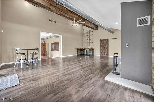 - Bar, Beamed Ceilings, Double Vanity, Eat In Kitchen, Granite Counters, High Ceilings, Kitchen Island, Open Floorplan, Primary Downstairs, Vaulted Ceilings, Walk In Closets