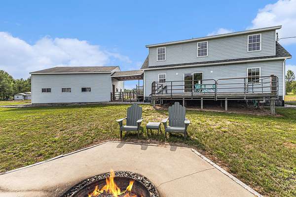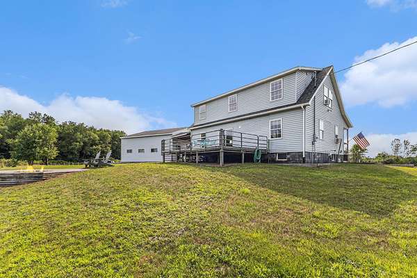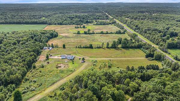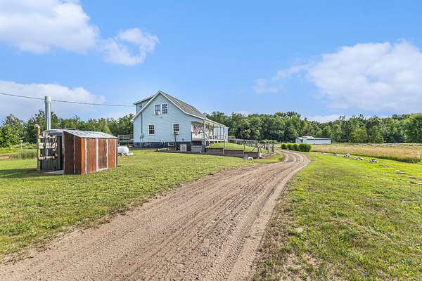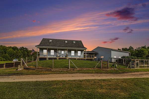 If you're looking for the perfect hunting retreat with all the comforts of home, this modern farmhouse delivers. Nestled on 40 private acres, this property is a true hunter's paradise, featuring established food plots designed to attract wildlife year around. Beyond the woods and wildlife, the home itself offers 4 bedrooms (3 upstairs, 1 on the main level) and 3 full baths, with the entire main floor handicap accessible. Enjoy peaceful mornings on the covered wraparound porch, and cozy evenings around the firepit. Additional features include: Full walkout basement, detached 32x36 garage with work area along, barns and outdoor wood boiler. This property has everything you need for a comfortable country lifestyle and prime hunting ground right out your back door.