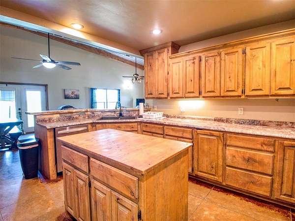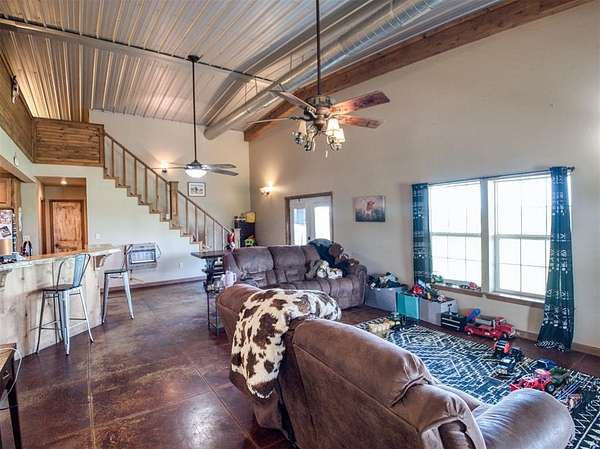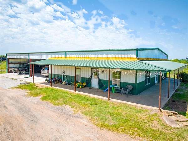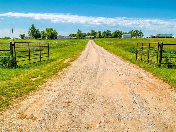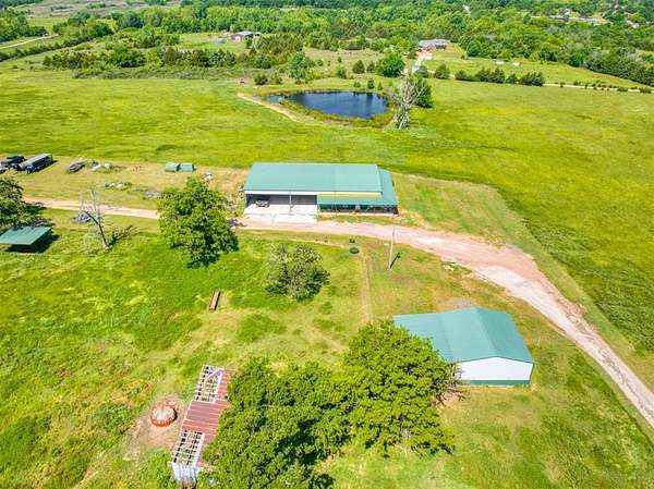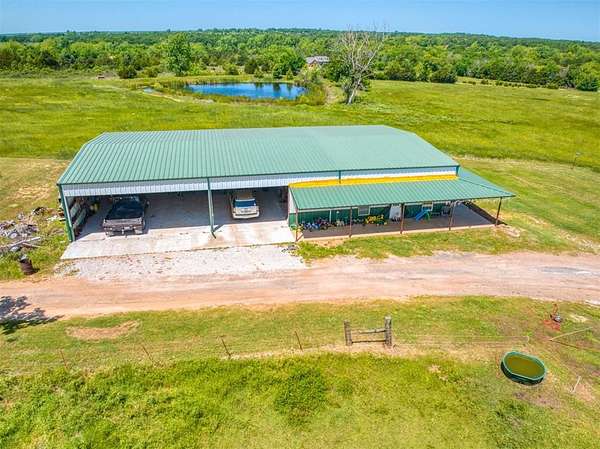 Very nice farm or ranch on 34+ acres with excellent improvements and a prime location. The property features a barndominium, large shop, multiple barns, horse sheds, and two ponds, along with several shade trees. The land offers fertile soil (with a strong soil report) that has previously supported truck crops and is ideal for producing hay or grazing livestock. The acreage is fenced and cross-fenced, with well-improved driveways and paved road frontage all the way to the entrance. A second home on the property offers potential as a guest house or income-producing rental with some updates. Other highlights include an excellent well and convenient access to Shawnee and Oklahoma City.