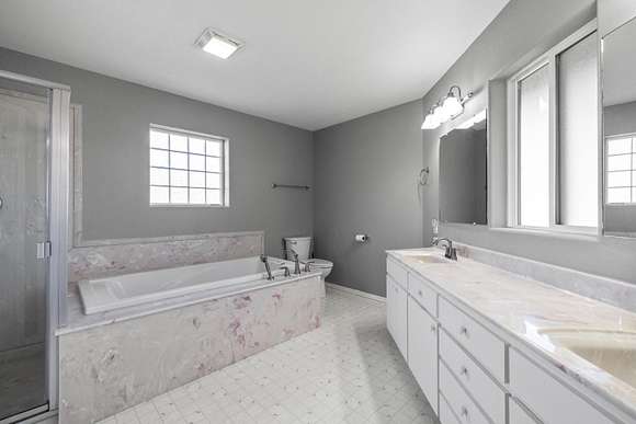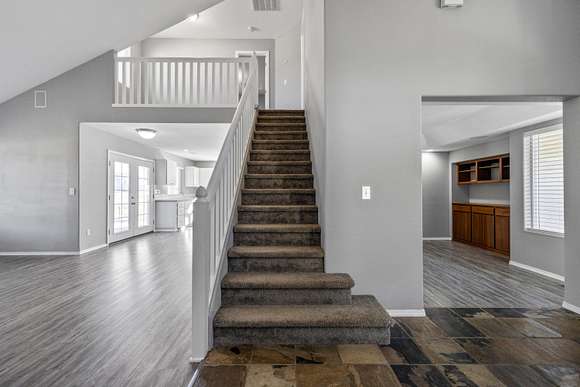 - Ceiling Fan(s), Central Vacuum, Double Vanity, Dry Bar, Kitchen Island, Laminate Counters, Linen Closet, Open Floorplan, Pantry, Primary Downstairs, Smart Thermostat, Soaking Tub, Vaulted Ceiling(s), Walk-In Closet(s), Wired For Sound