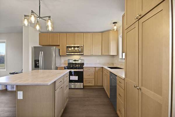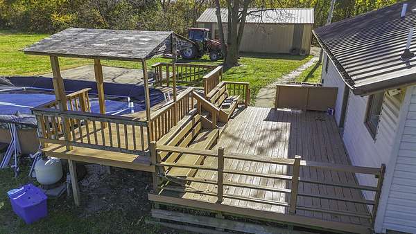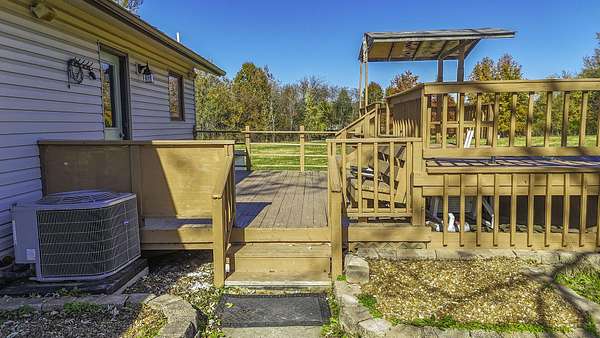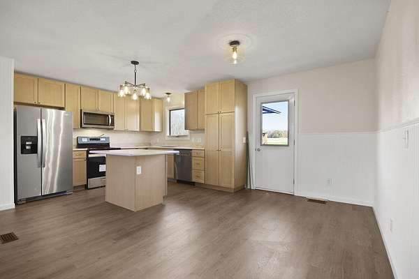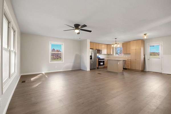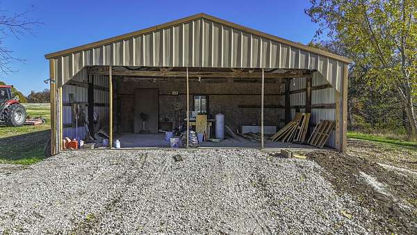Welcome home to peaceful country living! This beautifully remodeled 2-bedroom, 1.5-bath (over 2000 sqft) home sits on 4.27 open acres with no restrictions and plenty of room to roam. Originally built in 1985, the home has been fully updated from top to bottom and is move-in ready and full of charm! Inside, you'll find a brand-new kitchen with modern finishes, new flooring throughout, an updated full bath, and a new half bath. A brand-new HVAC system adds comfort and efficiency year-round. The full unfinished basement offers great potential, easily add another bedroom or two, a family room, or a hobby space to suit your needs.The 26 x 26 attached lower-level garage provides tons of storage and workshop space, while the 30 x 40 pole barn with electric is perfect for equipment, animals, or extra toys.