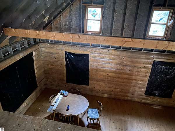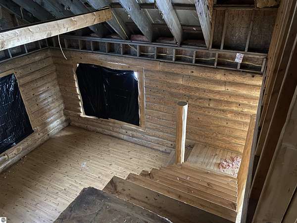 LOG CABIN/HOME - Under Construction with Exceptional Potential! This partially completed log cabin offers a rare opportunity to bring your vision to life in a highly desirable Up North setting. Main floor features one bedroom, one bathroom, laundry/utility room, along with an open-concept great room enhanced by vaulted ceilings that create an expansive and inviting atmosphere. Second bedroom/Loft overlooks the living area below offering additional sleeping space, a home office option, or a flexible retreat & relaxation area. Structural elements are well underway, with some flooring and insulation already installed. Unused building materials such as tongue-and-groove lumber and new ready-to-install pellet stove and hearth/pad included in sale offers both convenience and cost savings as you continue the build. Outdoor living spaces feature a full-length covered deck which spans the entire length of the cabin, perfect for taking in peaceful views of the surrounding landscape, an outdoor firepit, and a large covered porch at the welcoming entry point at the end of the driveway. Situated on approximately 2.7 wooded acres, this property offers privacy and an immersive natural environment with mature trees and abundant wildlife. Yet still close to local towns, Manton & Mesick, for shopping and dining out, and approximately 30 minutes to Cadillac. So much to do this in this beautiful "Up North" area of Michigan! An outdoor garden shed adds functional storage for tools, equipment, or recreational gear. Whether you envision a quiet year-round residence or a seasonal getaway, this property provides the framework, location, and character to create the cabin experience you have been looking for.