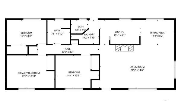- Bathroom x 2, Bedroom x 3, Dining Room, Laundry Room x 2