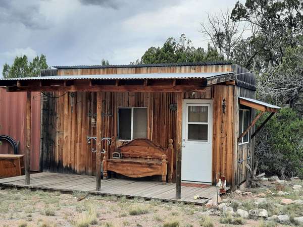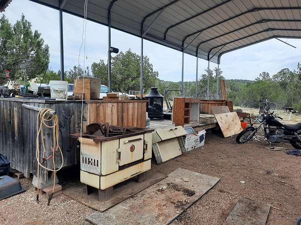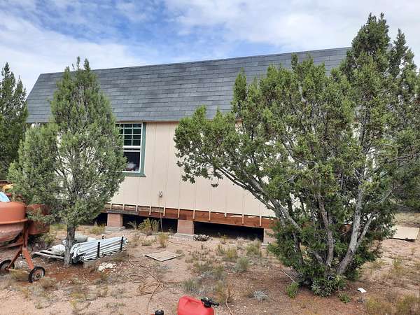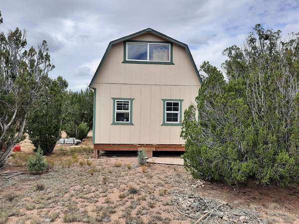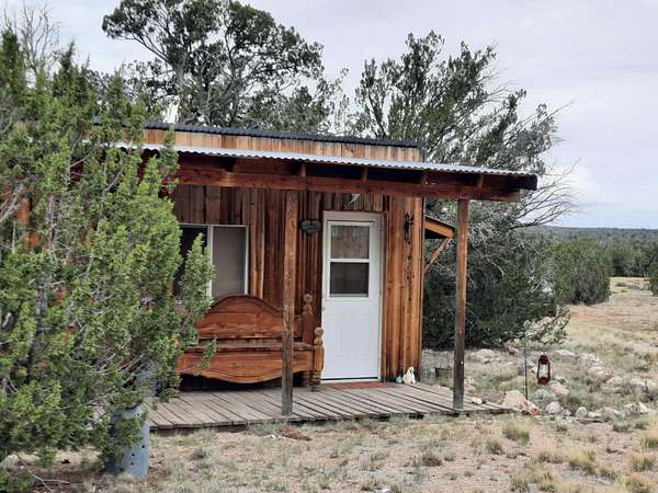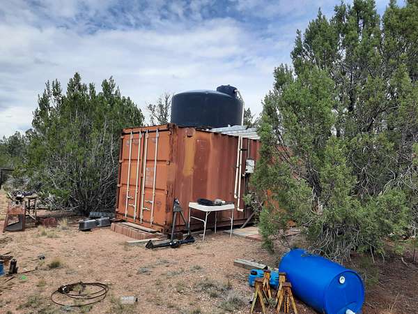 READY TO FINISH- Gorgeous 8+ acre Northern Arizona off grid property ready for your finishing touches. The 2 story 14x28 cabin has been roughed in and hold many building supplies as well as the cute bunkhouse! The huge RV carport has been started with a step out porch and outdoor kitchen as well as a few solar system pieces. The connex box holds the bunkhouse on one end and storage on other with one of the 3 water storage tanks on top. All being fenced inside an acre yard. The property conveniently located 1/2 miles south of I40 on Anvil Rock Rd. POA offers a community well located about 3 miles further down the road. This property is perfect for that weekend getaway, hunt camp or full time off grid living!! Schedule your appointment ASAP !! 35.27955, -113.08726
