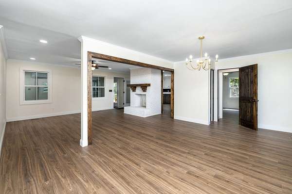 Welcome to your move-in ready dream home! Step into a bright, open floor plan with new flooring, fresh paint, elegant crown molding, crisp baseboards, and modern recessed lighting throughout. Enjoy the wide foyer, formal dining, and spacious great room, perfect for gathering with friends. The sunroom, now heated and cooled, makes a perfect home office or cozy retreat. A stunning remodeled kitchen features quartz countertops, all-new appliances, and a stylish coffee bar to get the morning started right. Relax in the spa-like master bath with a custom tiled shower and quartz vanity, while the large hall bath features a sleek tile shower/tub combo. Unwind on the charming front porch or entertain on the expansive rear deck. Updates include new PEX plumbing, energy-efficient windows, and upgraded electrical panels for peace of mind. Don't let this gem slip away, schedule your tour today! Property is owned by a licensed real estate agent.