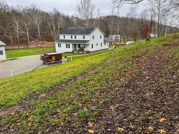 Introducing Tract 2 of the Rocky Fork Creek Homestead Farm, +/- 15 acres in Gallia County, Ohio! This property provides an assortment of opportunities such as full-time living, hobby farming, homesteading, and hunting! The home features two full bathrooms, multiple bedrooms, a large kitchen, and a spacious family room perfect for gatherings. Enjoy the outdoors from both a wide and welcoming covered front porch and a scenic covered back porch overlooking the land. Inside, you'll appreciate the fine woodwork, hardwood floors, and a layout that feels open and roomy throughout. There is beautiful concrete work on the sidewalk, and the drive has plenty of gravel. The property is well-equipped with fencing throughout the main part of the farm, making it ideal for livestock or horses. A large custom bank barn with concrete floors, multiple stalls, hay loft, tack area, and lean-to provides everything needed for animals, equipment, or storage. Additional outbuildings, including multiple sheds and a chicken house, add to the property's versatility. Year-round Rocky Fork Creek winds through the land, offering a natural water source for livestock and just a great all around water source. There is no shortage of wildlife, especially deer, in Gallia County. A long gravel driveway sweeps around the barn for easy access and smooth entry and exit. The fully fenced pasture provides beautiful views and plenty of open space for animals or future expansion. This property is a rare find--combining a spacious home, quality buildings, water for farming and a turn key farming setup. This parcel is part of a larger tract and more land is available. "Sellers" oil, gas and mineral rights convey . Wood burning stoves, boilers, and gas stoves are negotiable. There is electricity available on the road. The farm is +/- 25 minutes to Gallipolis and Oak Hill; and +/- 30 minutes to Crown City and Jackson. All showings require 48 hours notice and are by appointment only with NO Sunday showings being offered. If you have any questions or are interested in a private showing, please contact Brian Whitt at (937) 545-7764 or Josh Grant at (330) 341-0997 .
