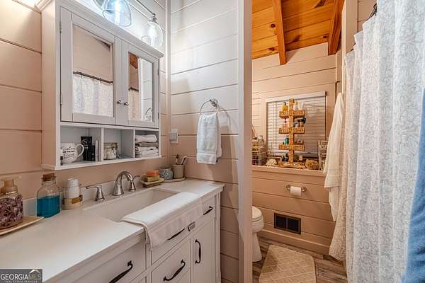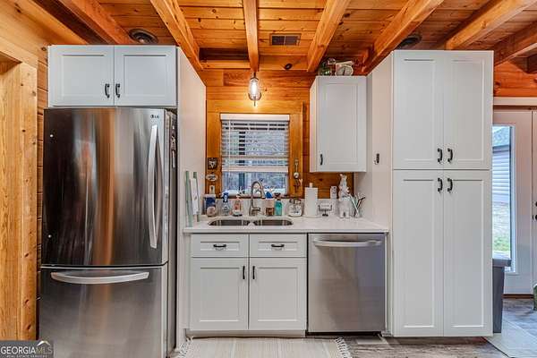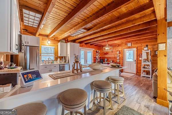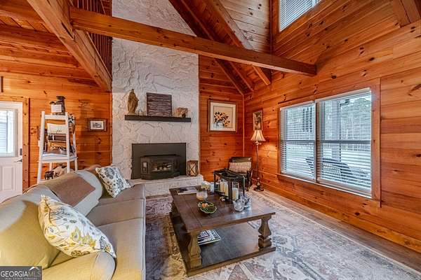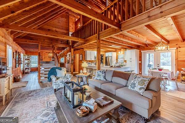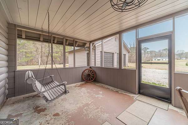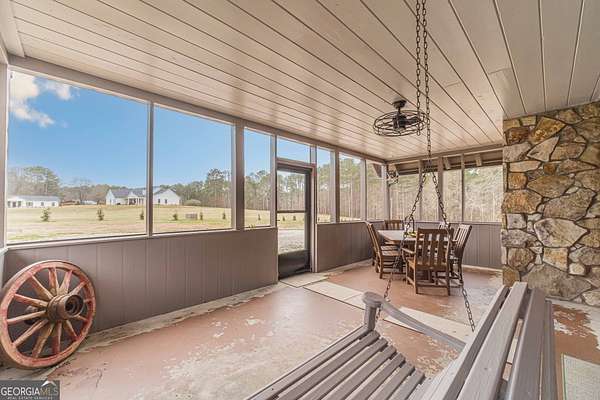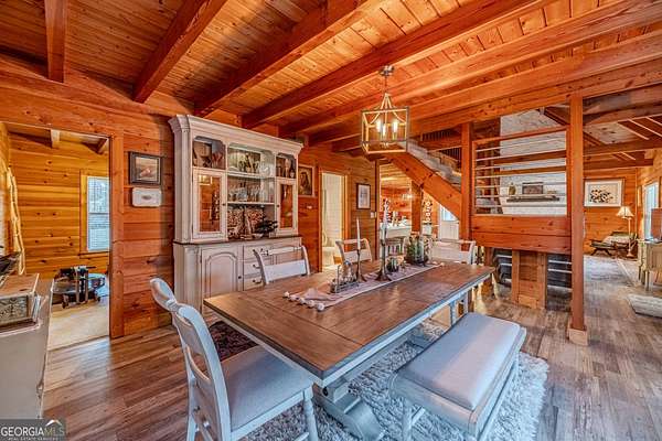 A true cabin-in-the-woods retreat on desirable Stock Road! This meticulously maintained home sits on 2.84 level acres filled with wildlife and natural beauty truly a nature lover's dream. The exterior features a 2-year-old roof and fresh designer paint, along with a welcoming rocking chair front porch where you can relax and watch deer wander through the yard after a long day. Enjoy outdoor living with a private backyard, entertaining patio, and a second-story covered deck perfect for reading or afternoon naps. Additional outdoor highlights include a screened-in side porch, plus a detached oversized garage with plenty of room for vehicles, landscaping equipment, or ATVs. Inside, the home is spotless and well loved, offering 3 bedrooms and 2.5 bathrooms. The spacious family room features a vaulted ceiling, cedar walls, exposed beams, and a stunning white stone fireplace, all complemented by LVP flooring. The owner's suite and second bedroom are conveniently located on the main level. The kitchen has been beautifully upgraded with white shaker-style cabinets, soft-close doors and drawers, solid surface countertops, and stainless-steel appliances. The sink overlooks the backyard, and the counter seating is ideal for guests. Additional spaces include a breakfast area and a separate dining room that comfortably seats 12+, both featuring LVP flooring. A custom staircase with metal accents leads upstairs, offering a dramatic two-story view of the family room. The second level includes a large loft area, full bathroom, and a spacious bedroom currently used as a second owner's suite, complete with a huge walk-in closet. This home is full of thoughtful details beautiful d cor, shiplap bathroom walls, statement light fixtures, cedar accents, exposed ceilings, and an open main level perfect for entertaining. With abundant outdoor space for relaxing and enjoying nature, this home truly has it all. Conveniently located near Grayson, Bethlehem, Loganville, and Monroe, and just minutes from Hwy 316, Hwy 78, The Gateway, and Downtown Monroe. A must-see to truly appreciate schedule your showing today!